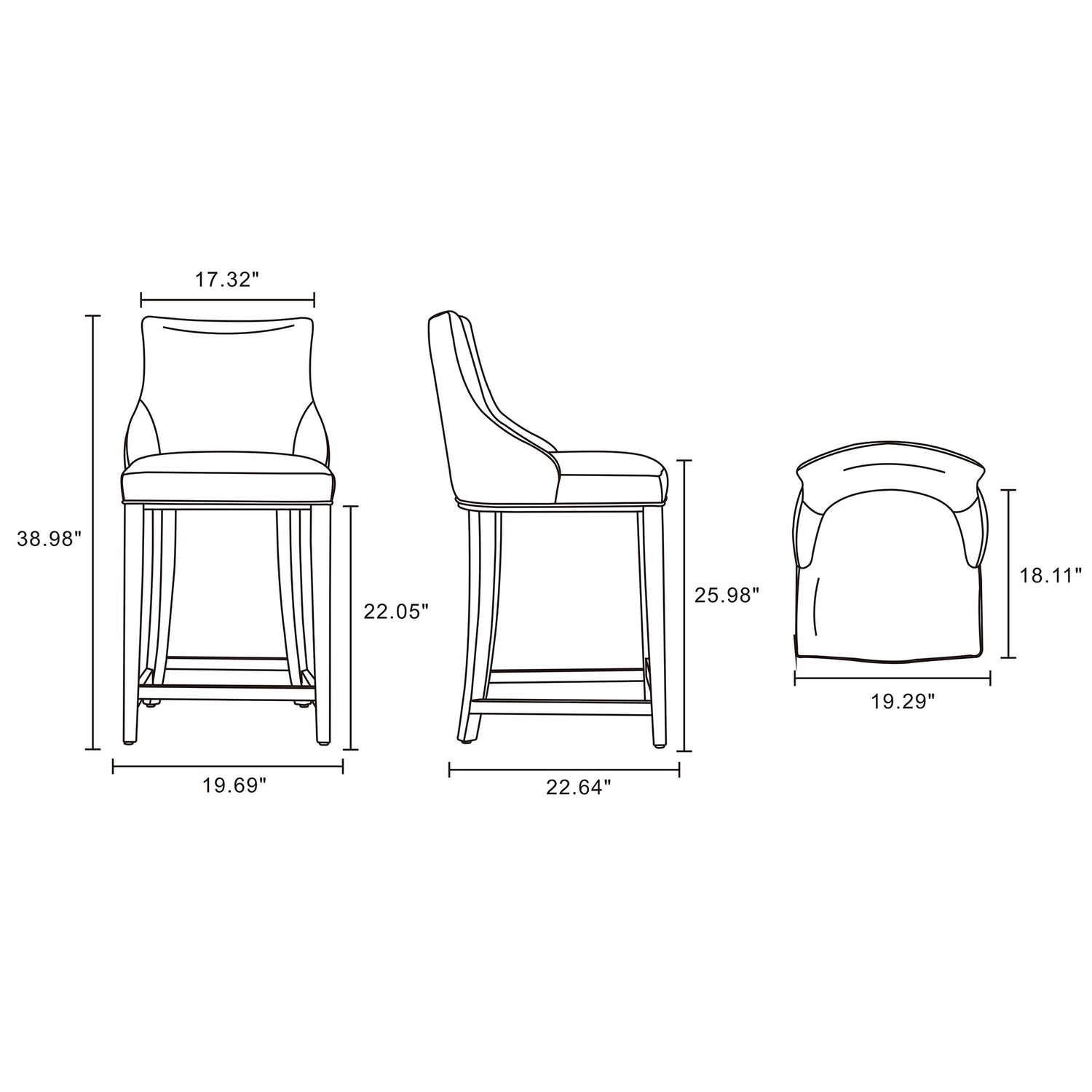 - Counter Stool Dimensions Measure: 22.64 in. Length, 38.98 in. Height, 19.69 in. Depth.