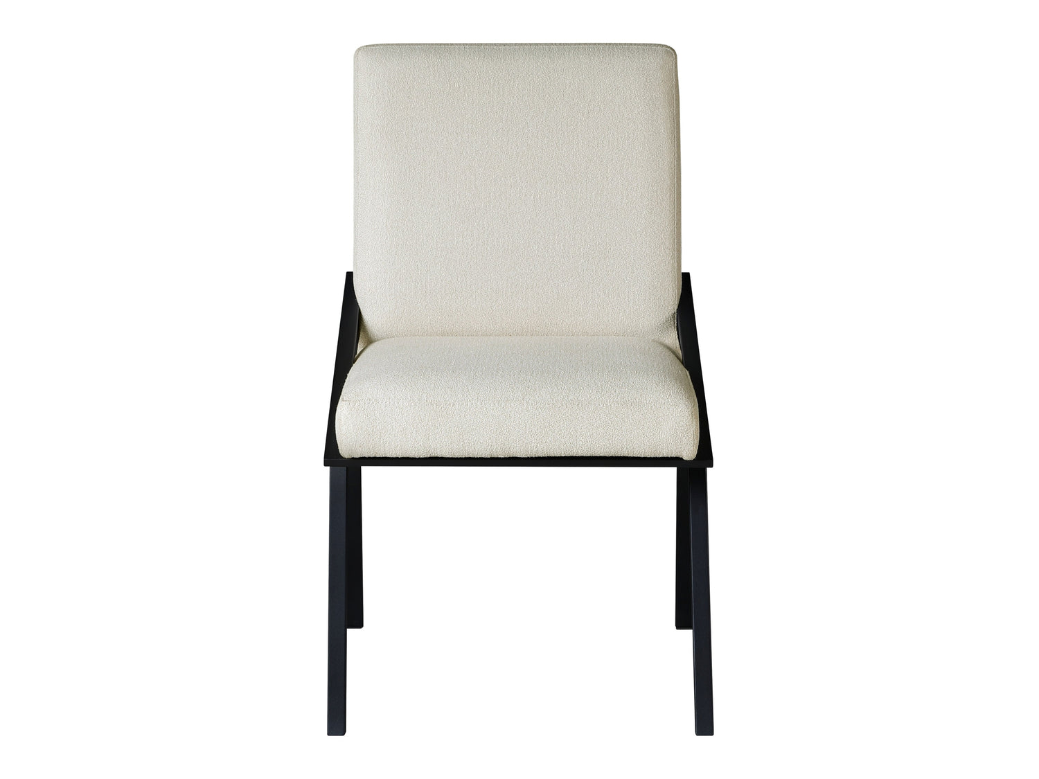 Add a touch of contemporary elegance and comfortable seating to your dining space with this cream textured fabric dining chair. Featuring a sleek black powder-coated metal base and soft textured fabric upholstery in a neutral cream color, this chair offers both style and support. The unique open design of the metal base adds a modern touch, while the padded seat and back ensure a comfortable dining experience. Perfect for dining rooms, kitchens, or as an accent chair, this chair is a chic and versatile addition to your home. Assembly is required.