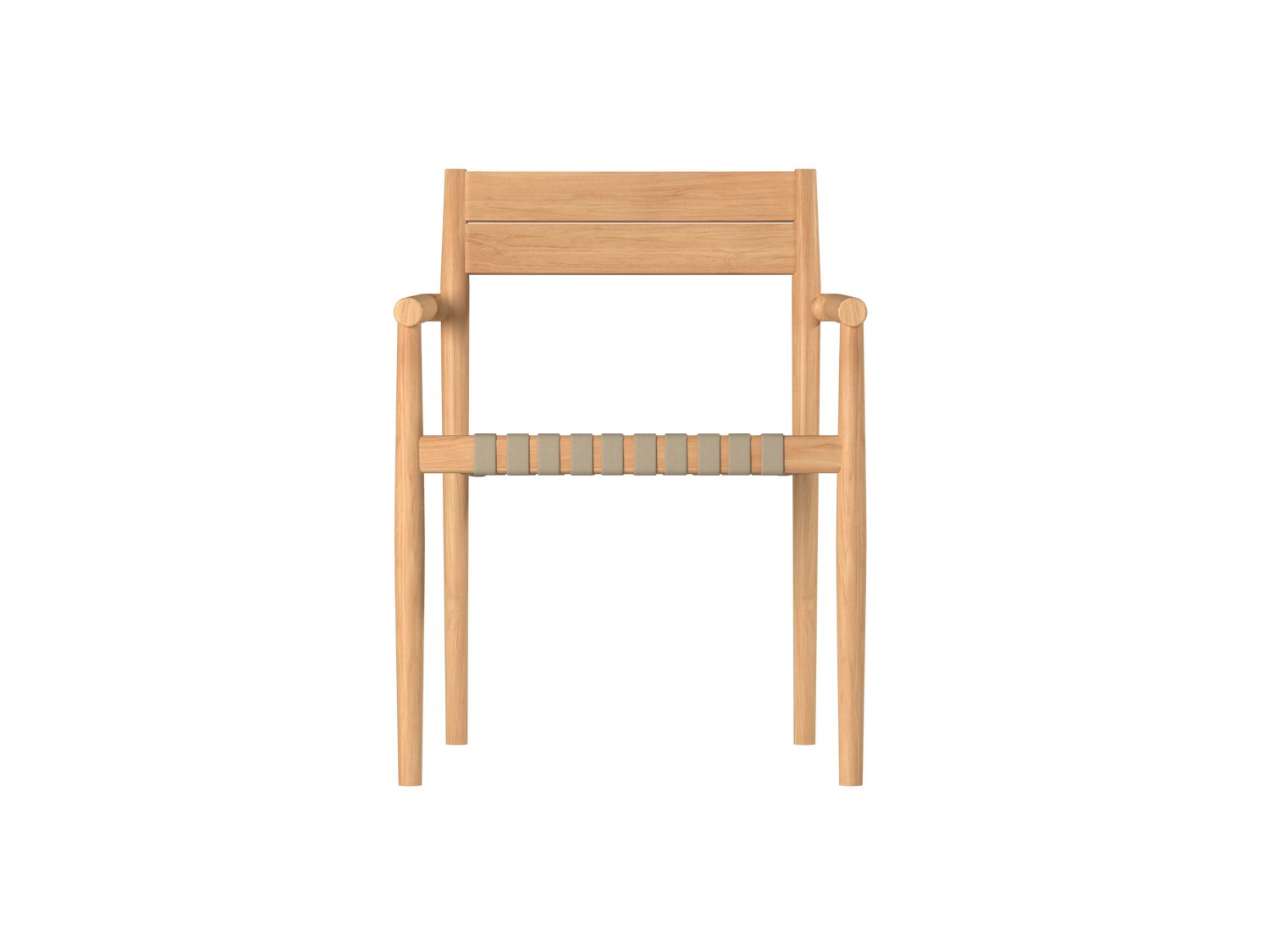 - Materials: Teak Wood and Polyester Strap- Color: Taupe Beige