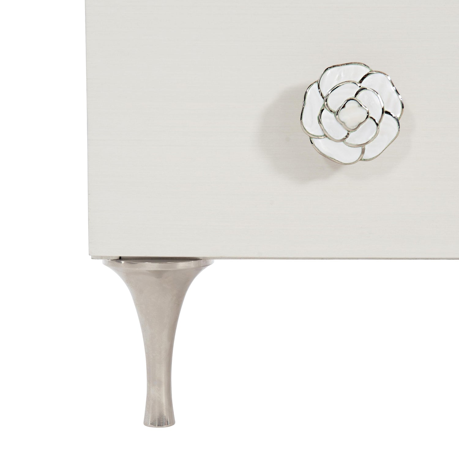- Hardware pulls in plated nickel with inlay of Kabebe shell