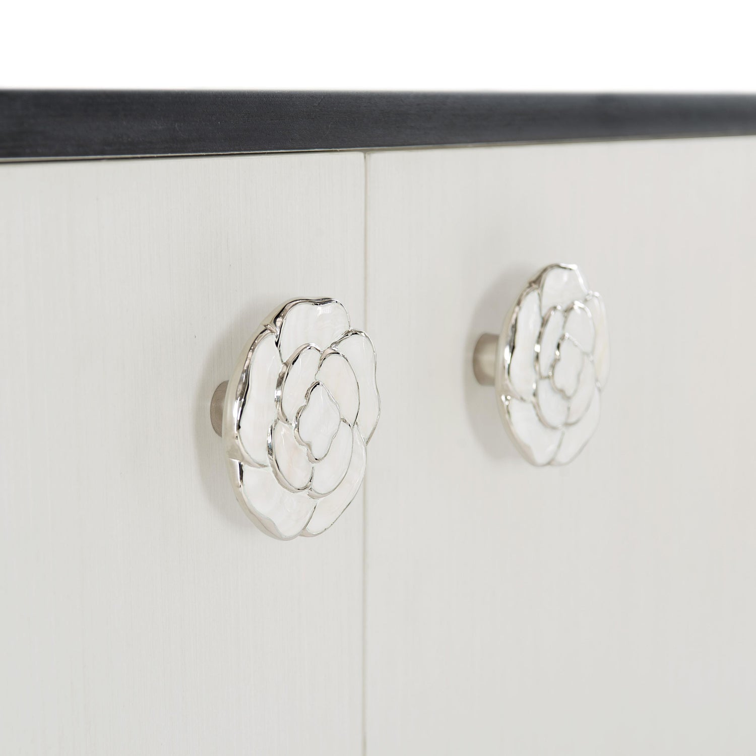 - Hardware pulls in plated nickel with inlay of Kabebe shell