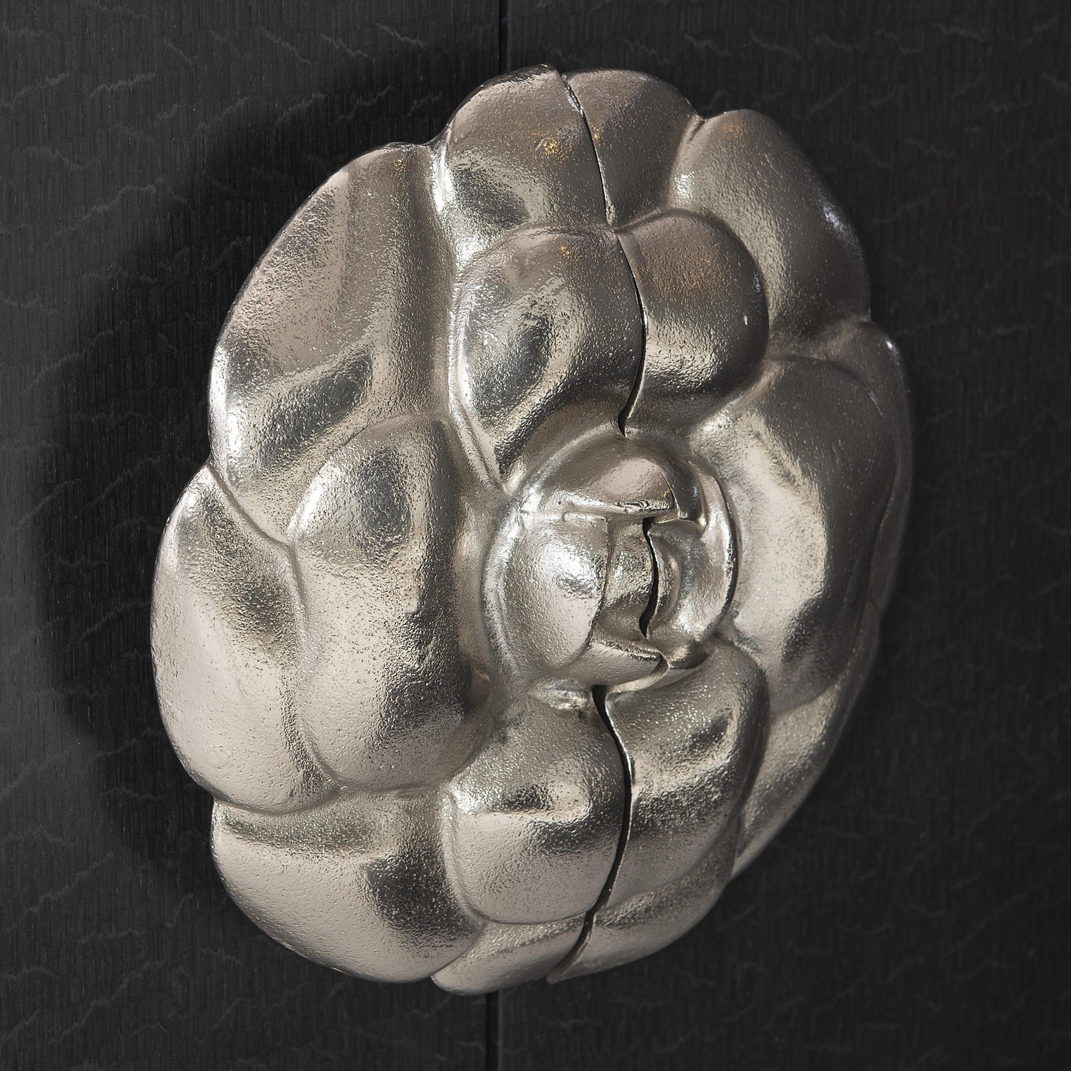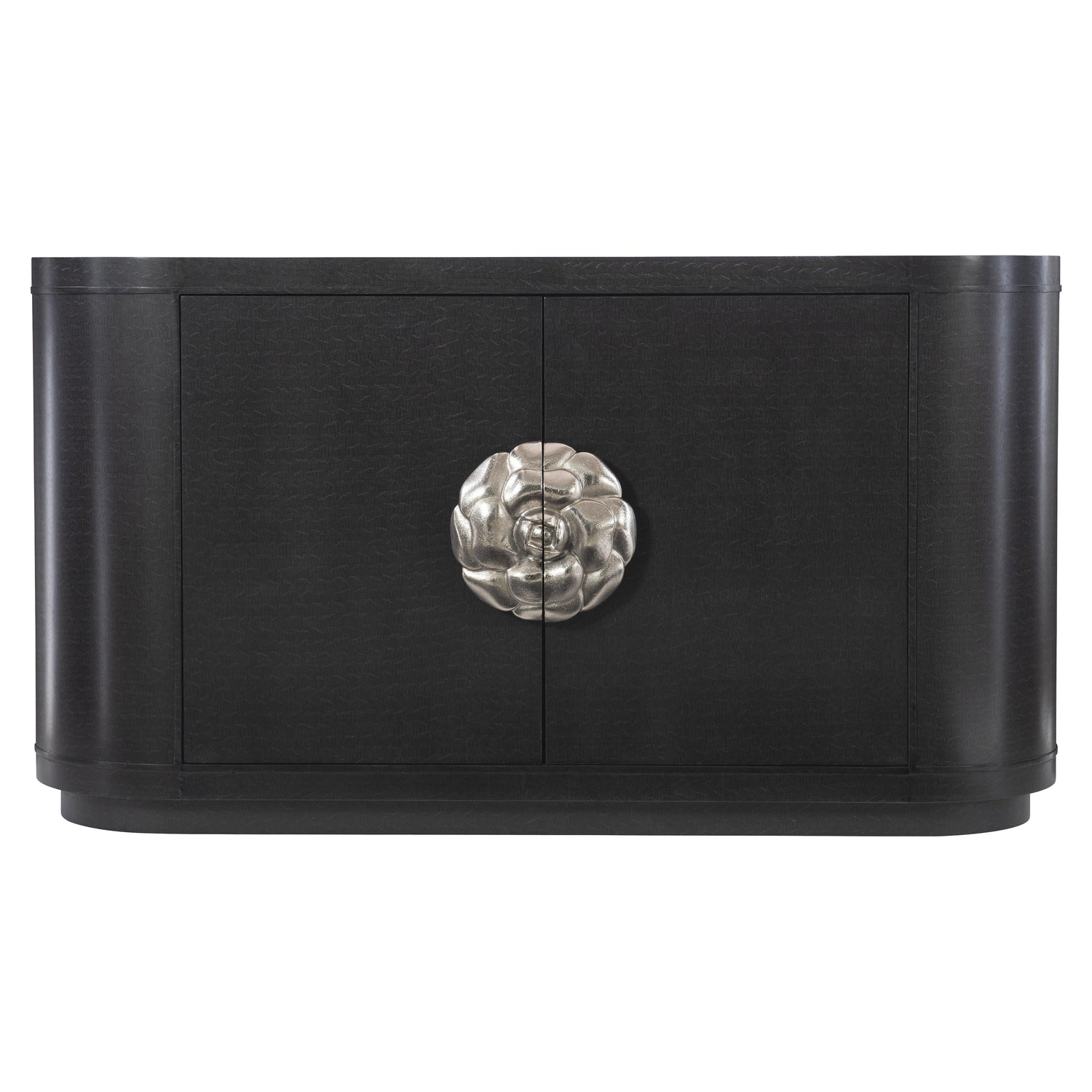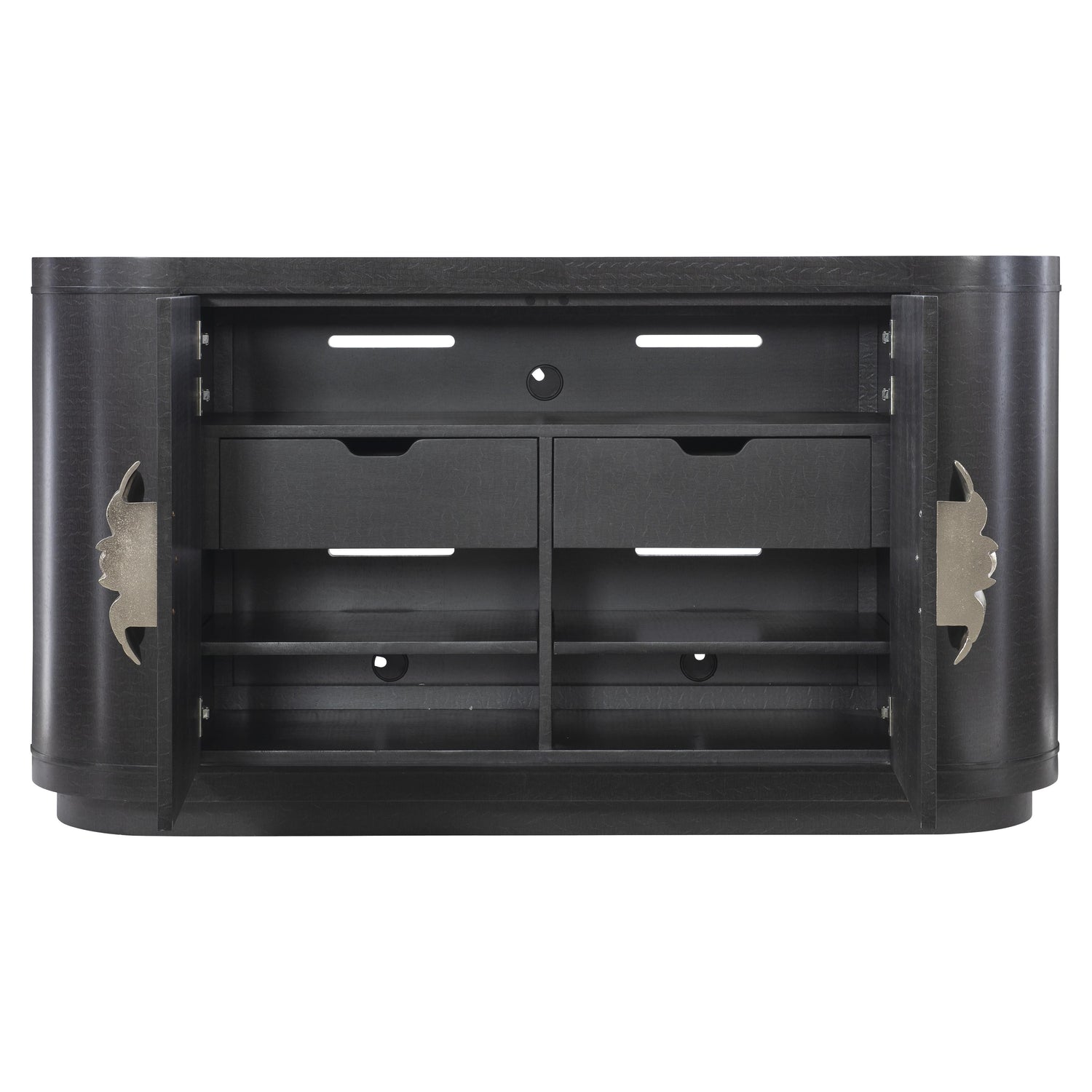 - Behind paired doors is one fixed shelf, two soft-closing drawers with hand cut-out, one divided adjustable/removable shelf and bottom shelf surface