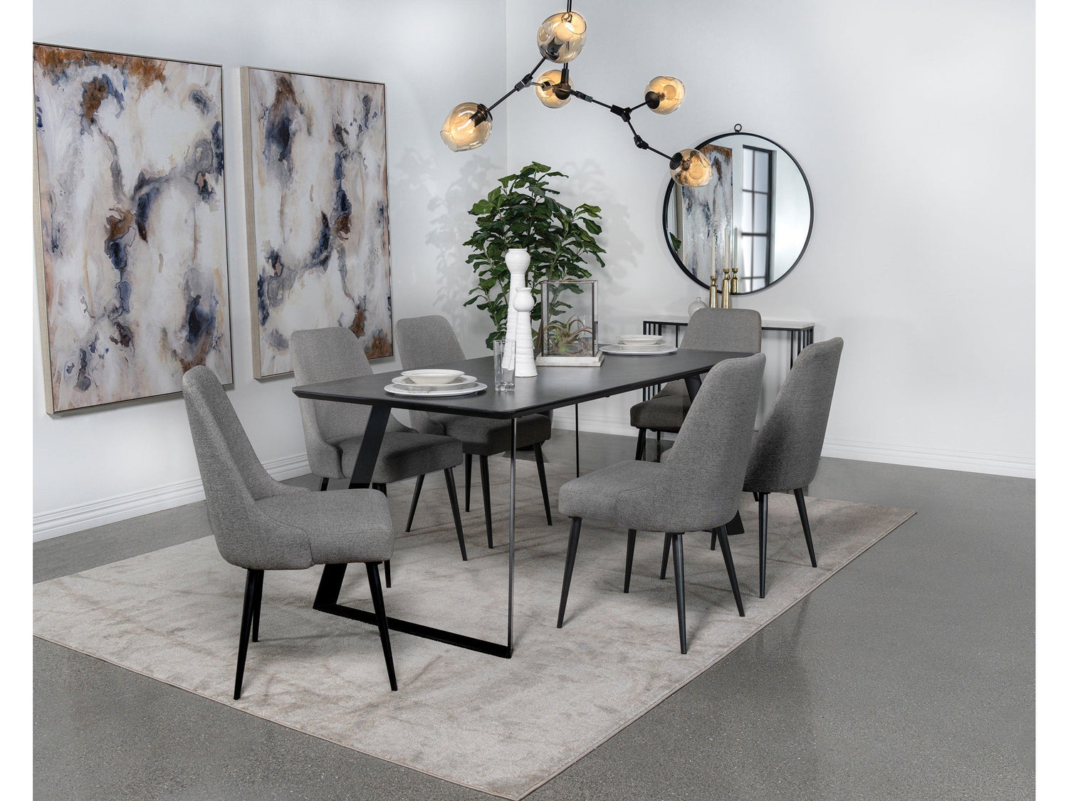 Smith Black 7-piece Rectangular Ceramic Top Dining Table Set