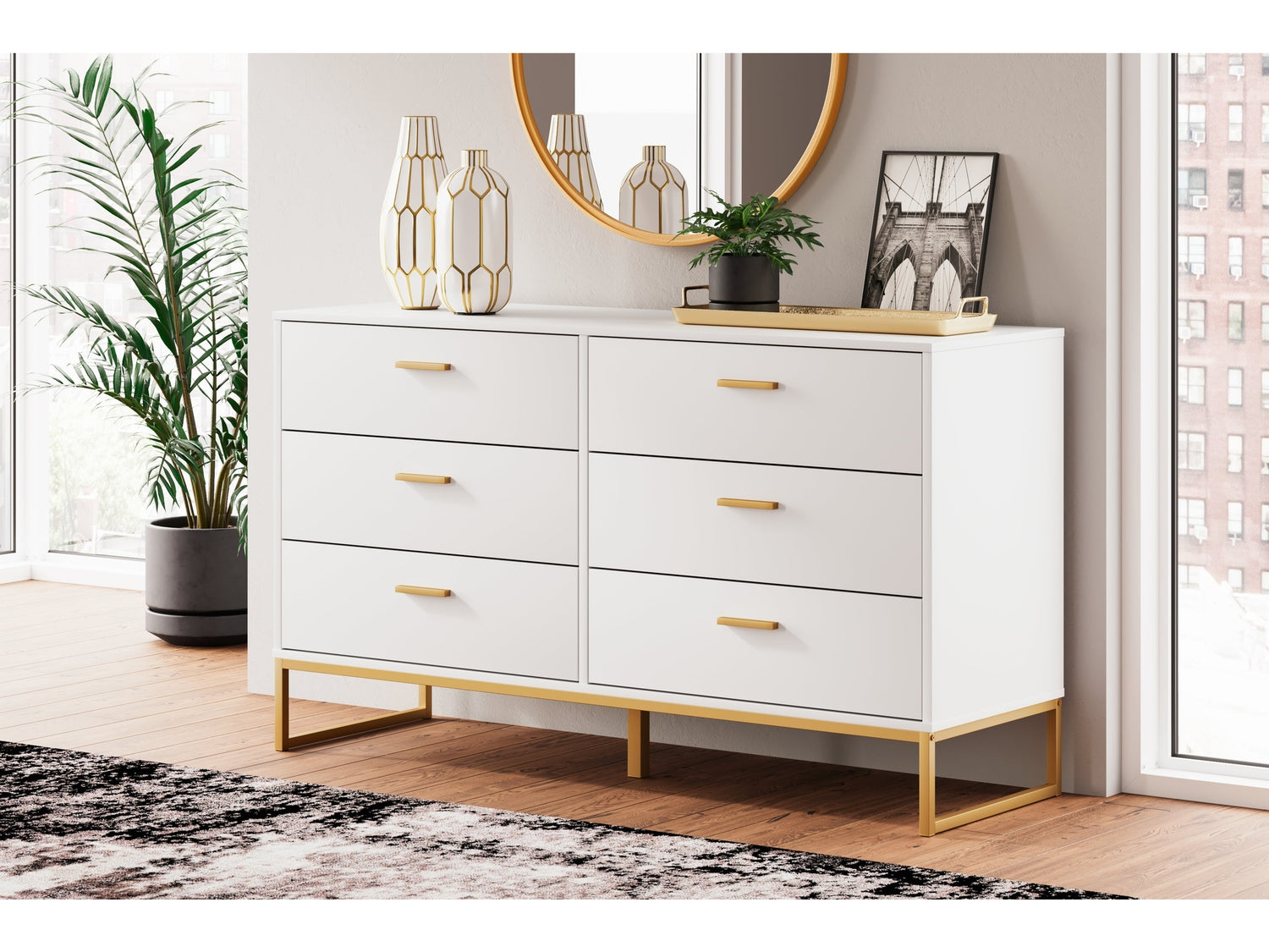 Light and bright, this dresser is inspired by chic design. A matte white finish and goldtone accents offer an elegant touch to this so-cool piece. It beautifully blends the hues of natural living with the edginess of your modern lifestyle.
