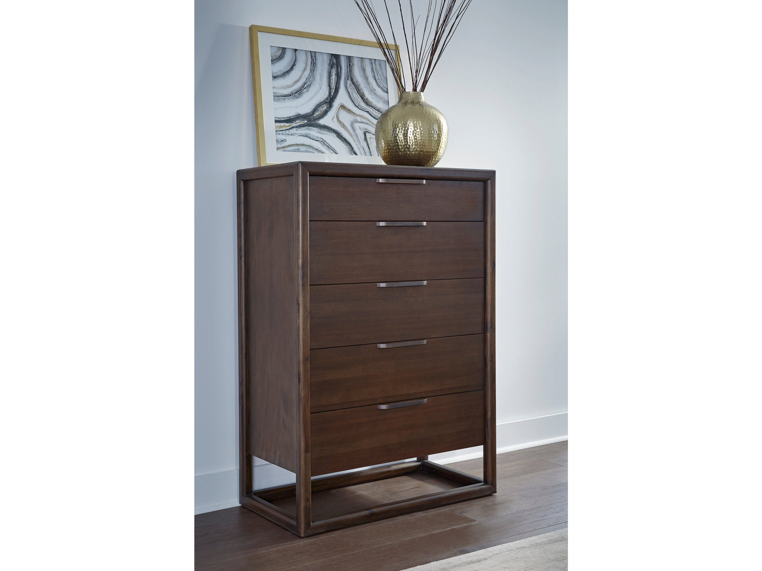 Sol Brown Spice Five Drawer Acacia Wood Chest
