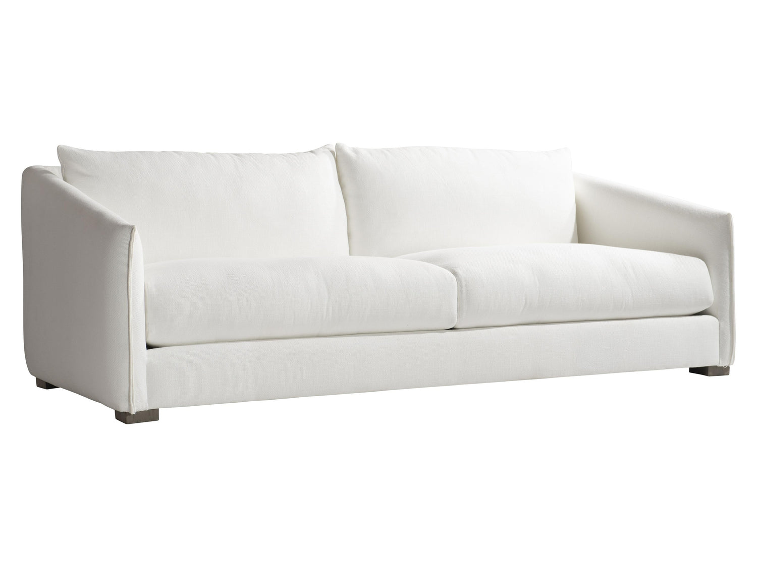 The Solana White/Cream Outdoor Sofa is an outdoor sofa constructed from outdoor performance fabric that offers comfort in all-weather style. A fully upholstered frame creates softness, featuring a distinctive knife-edge pleat on the arm fronts, while its relaxed design mimics the look of an interior sofa.