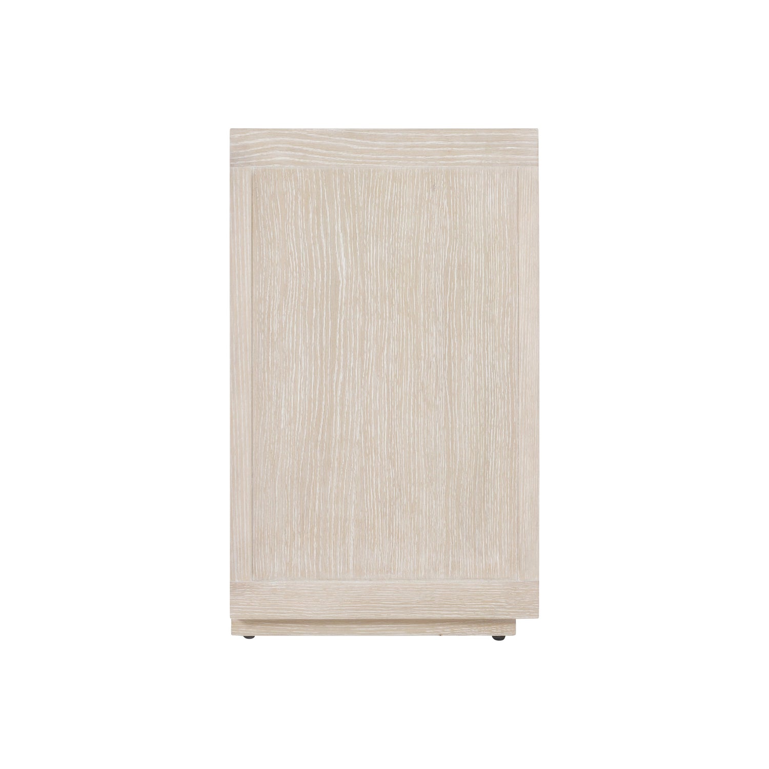 Subtlety defines the Solaria nightstand, crafted from ash solids and quartered white oak veneers in a Dune finish. At first glance, it appears to be an all-wood design, but the quiet sheen of the metal finger pulls draws the eye and defines the form. Two drawers and an open compartment create essential storage, and a two-port USB charger is found on the back panel of the case.
