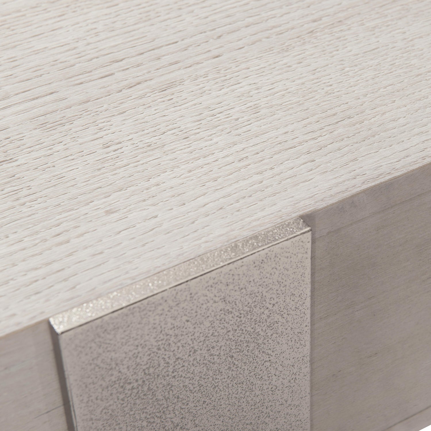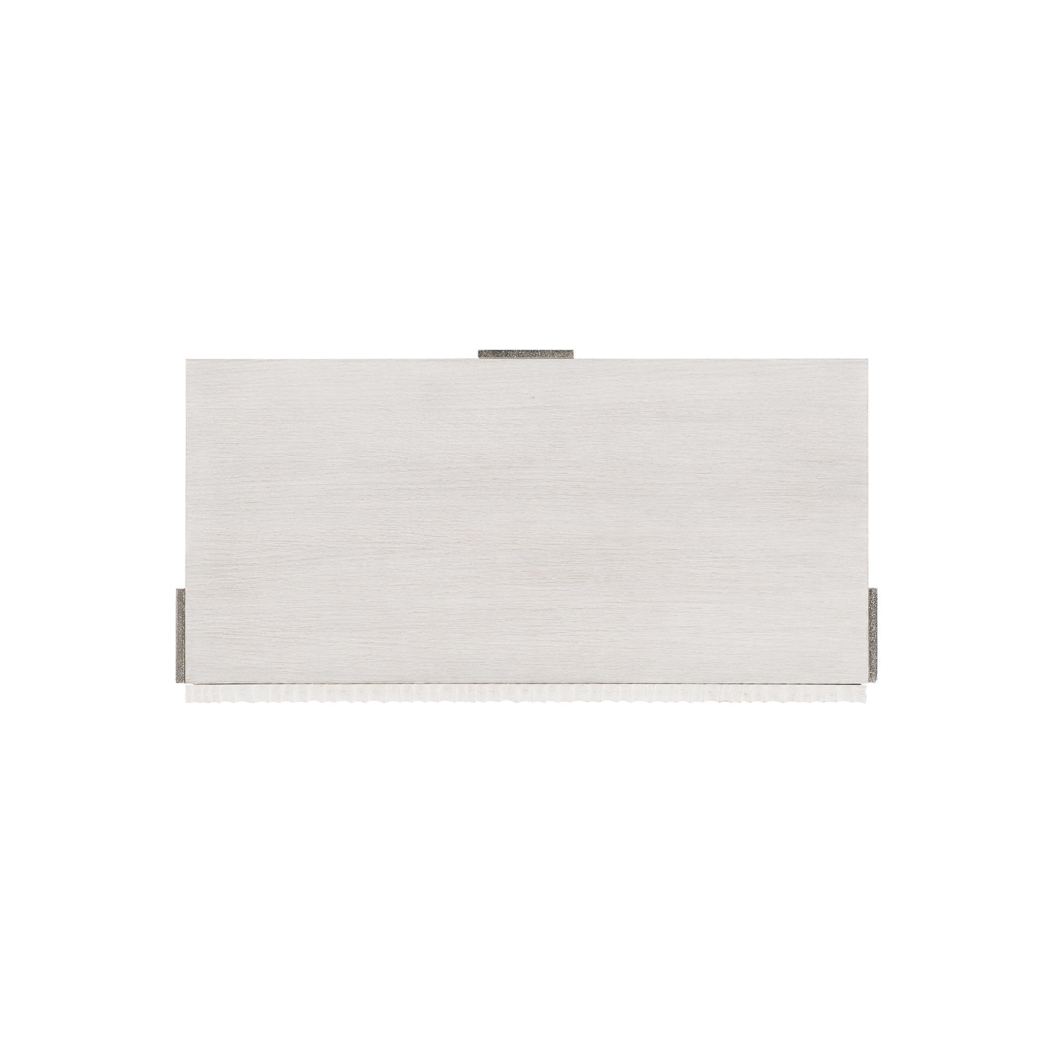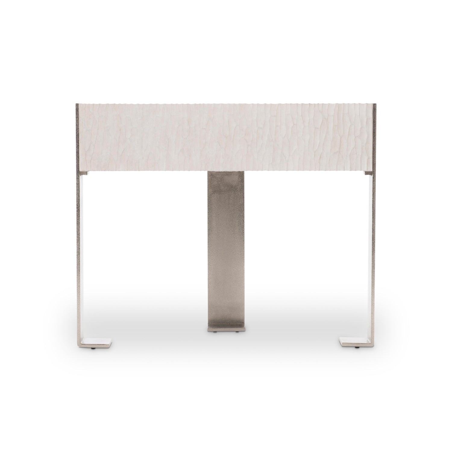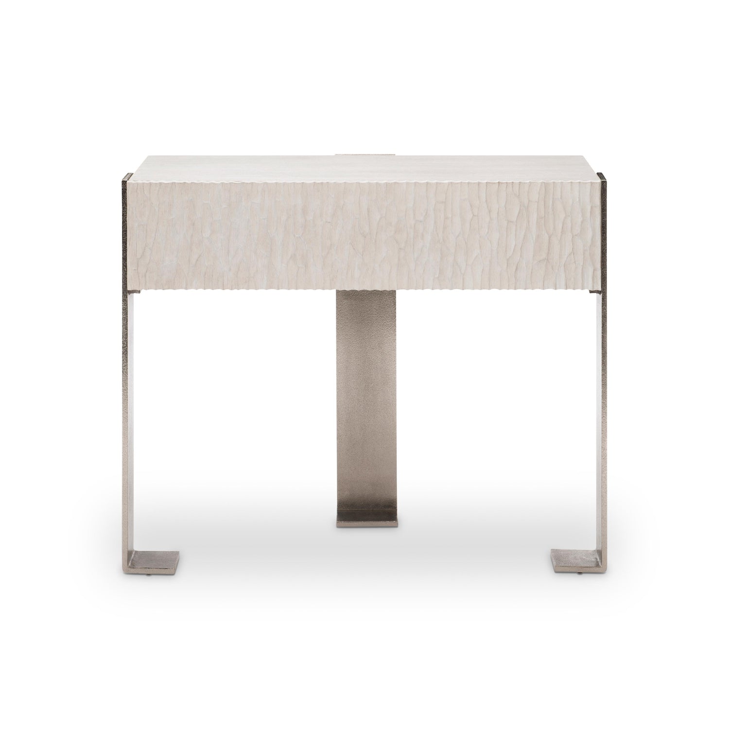 - Rectangular nightstand in Weathered Bone finish with one drawer with cast chiseled front