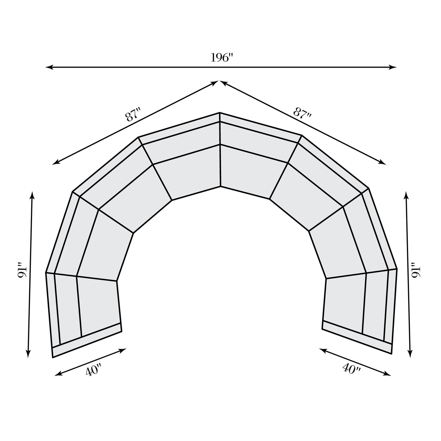 Overall Dimensions (Inches): 196" W x 128" D x 27.5" H