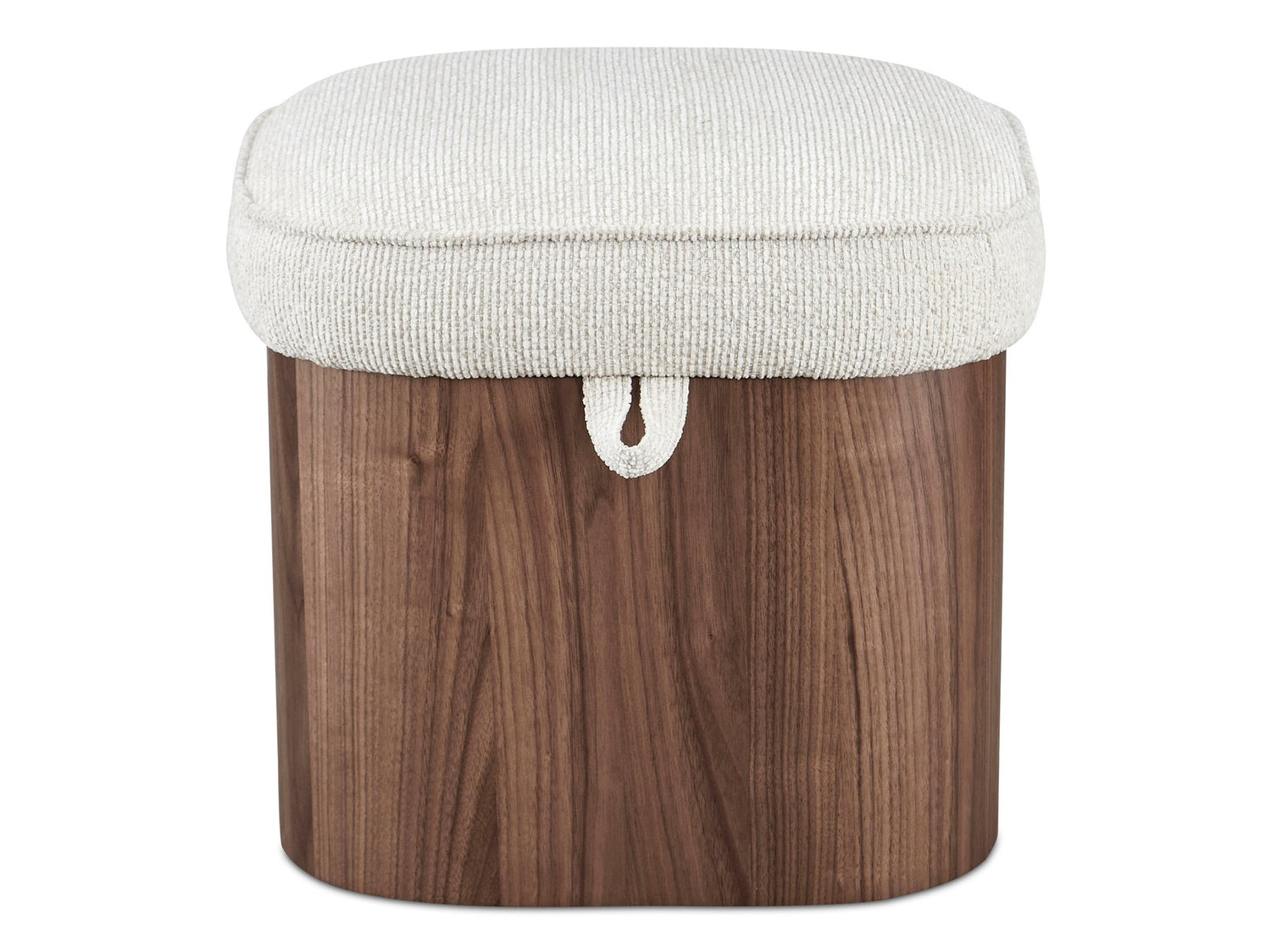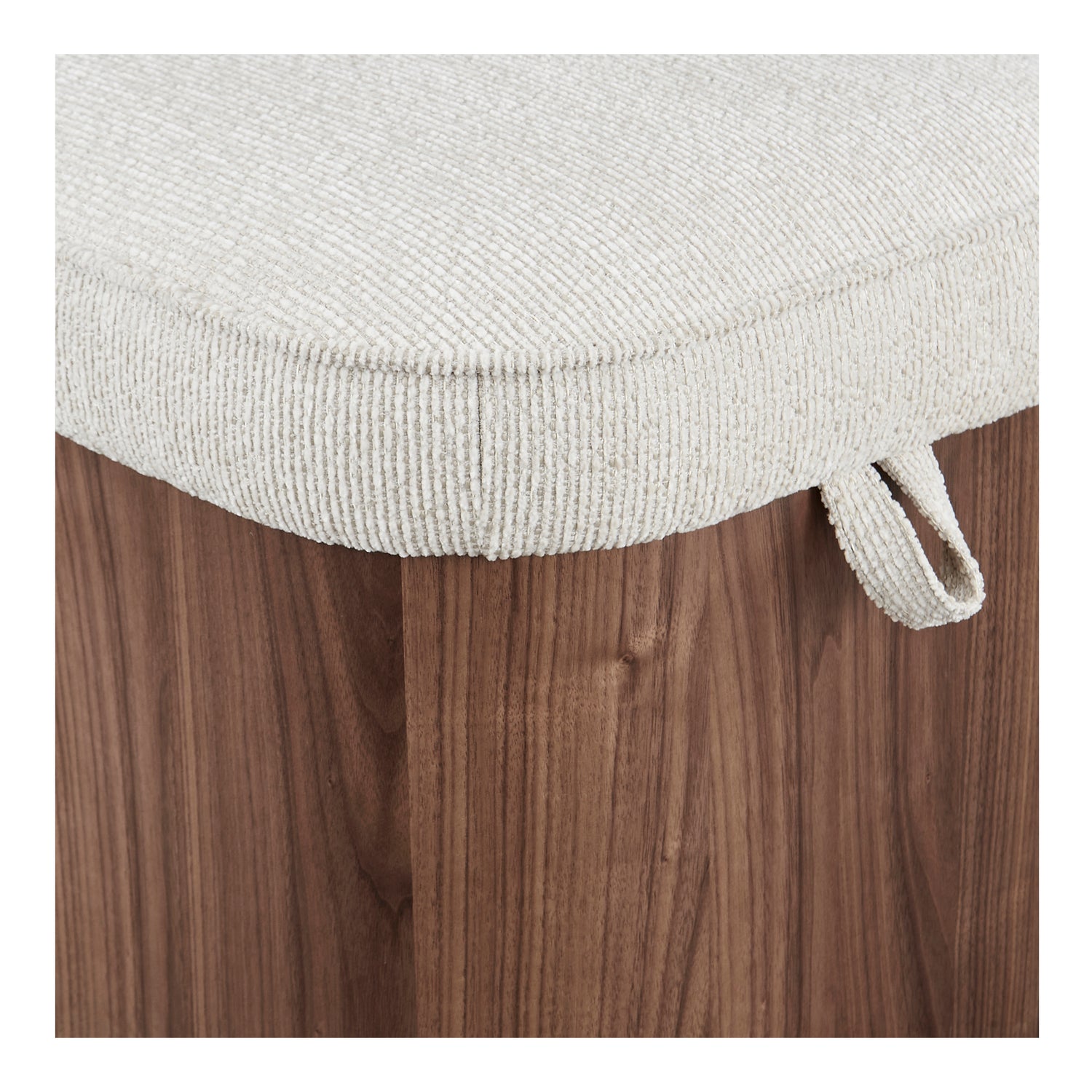 - Lift-top storage- Soft plush seat with flecked oatmeal fabric upholstery & piping detail
