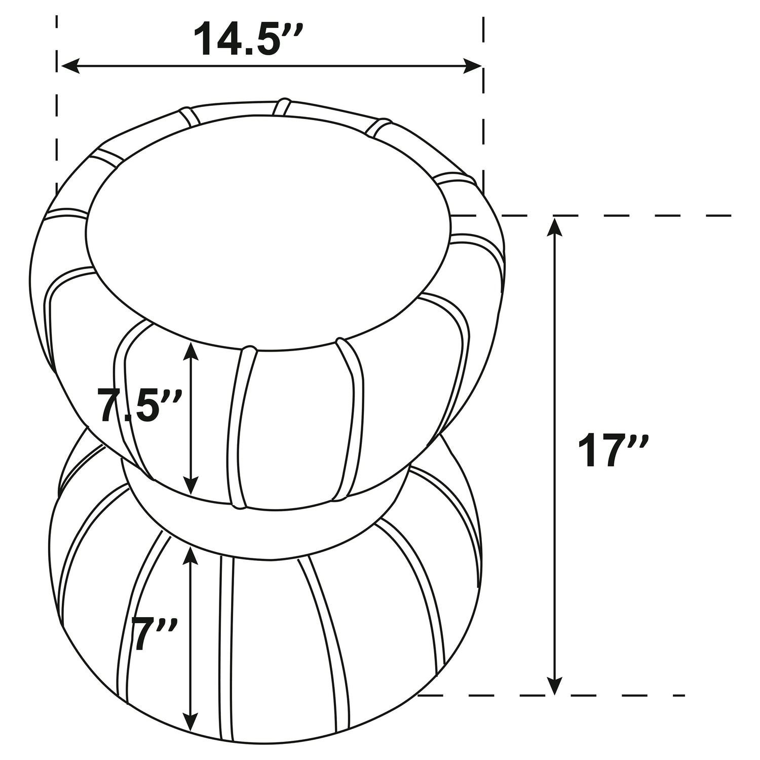 Ottoman Dimensions= 14.5"W x 14.5"D x 17.0"H, Weight= 7.85 lbsPackage Dimensions= 19.0"L x 16.0" x 16.0"H