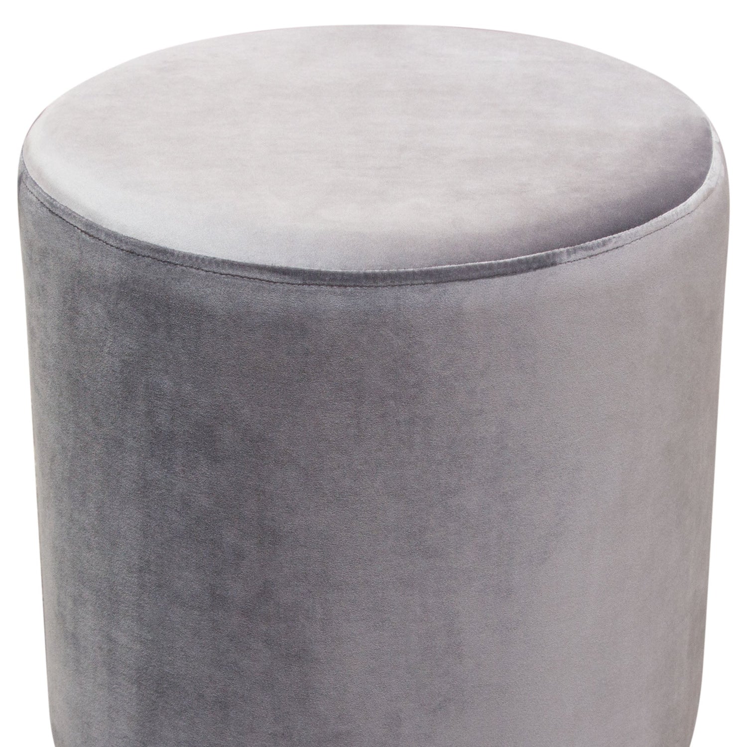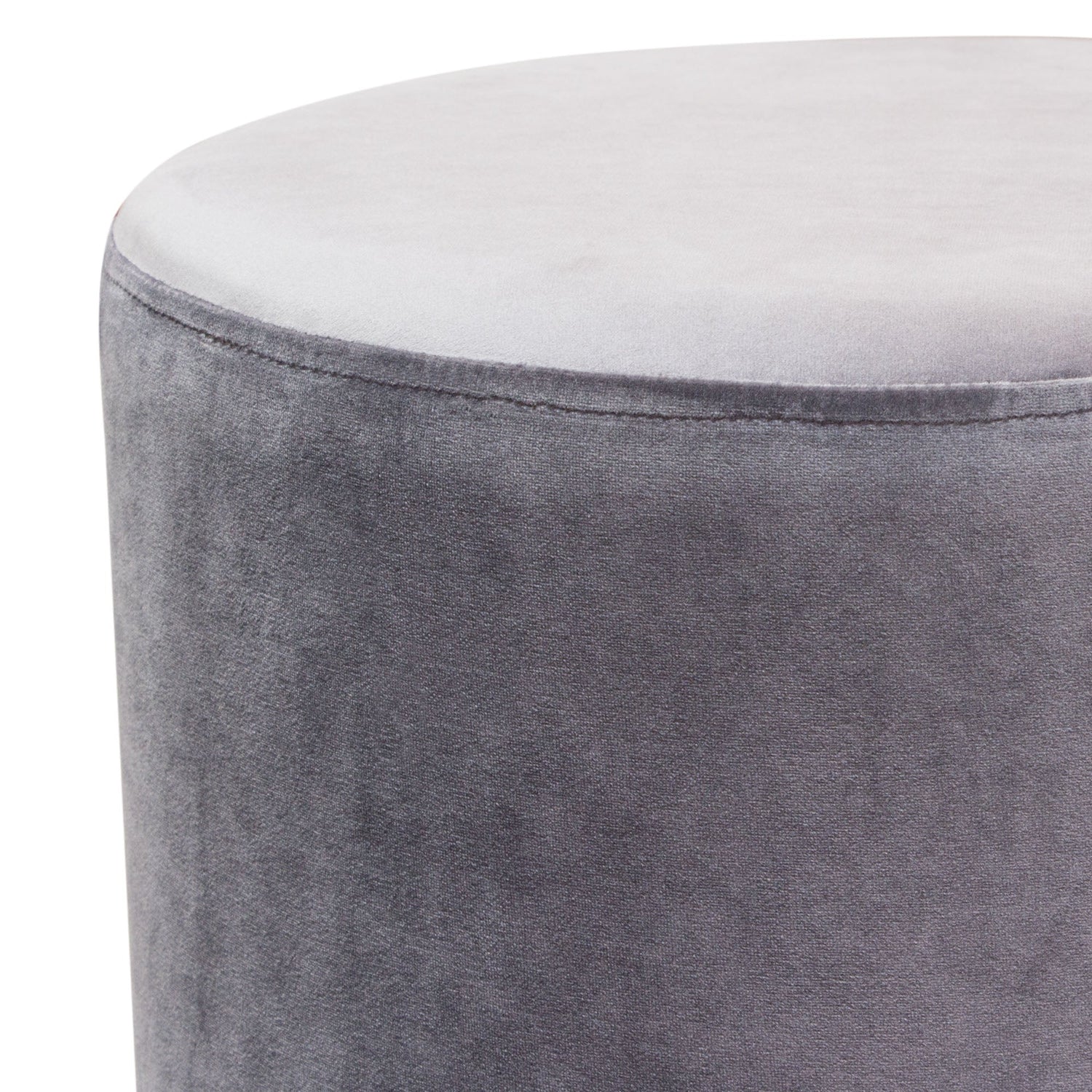 - These plush round seating ottomans are stylishly covered in four sumptuous velvet colors with accenting metal band around the base of the stool to give it a chic look and feel.