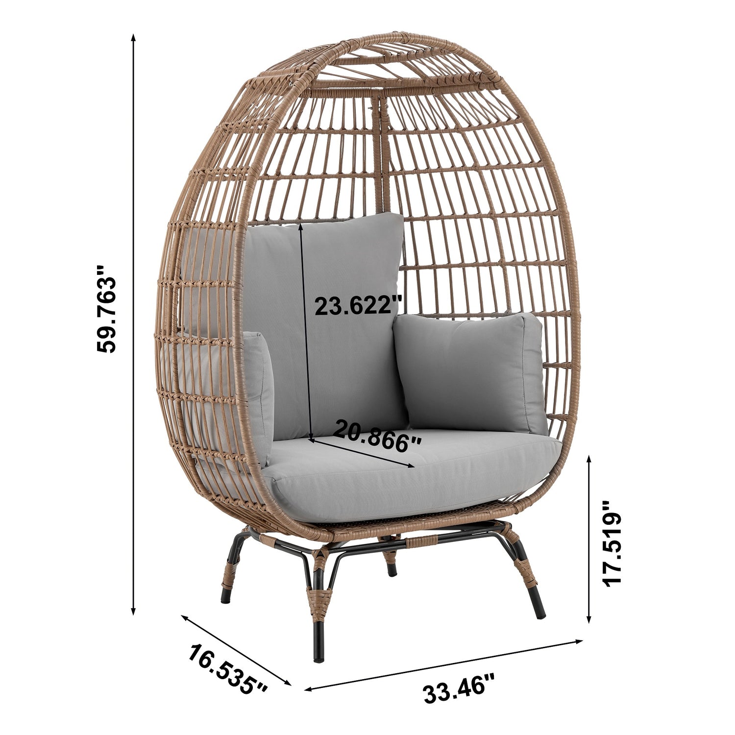 - Upon assembly, Patio Freestanding Egg Chair Dimensions Measure: 33.46 in. Length, 59.76 in. Height, 16.53 in. Depth.