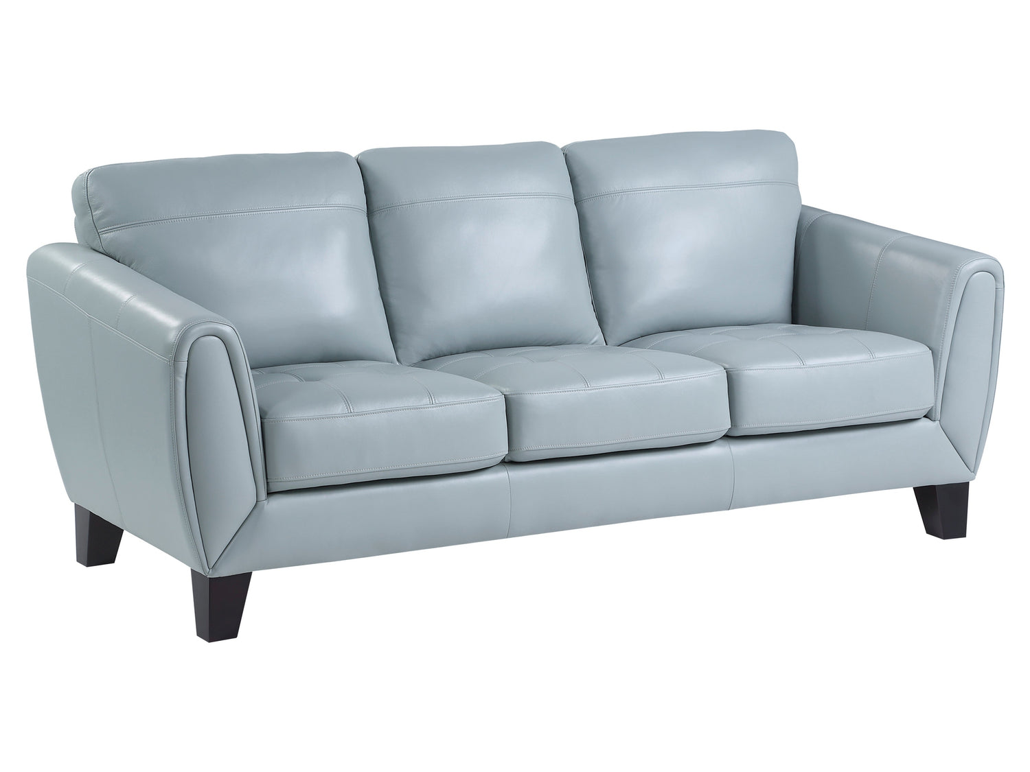 The subtle retro look of the Spivey Collection will pair with modern aesthetic of your home’s décor, creating a classically cool look that is sure to turn heads. The streamlined profile of the sofa is covered in an aqua hued top grain leather. Defining detail comes in the form of the arm’s contour stitching and the cushioned wrap of the sofa’s arms.