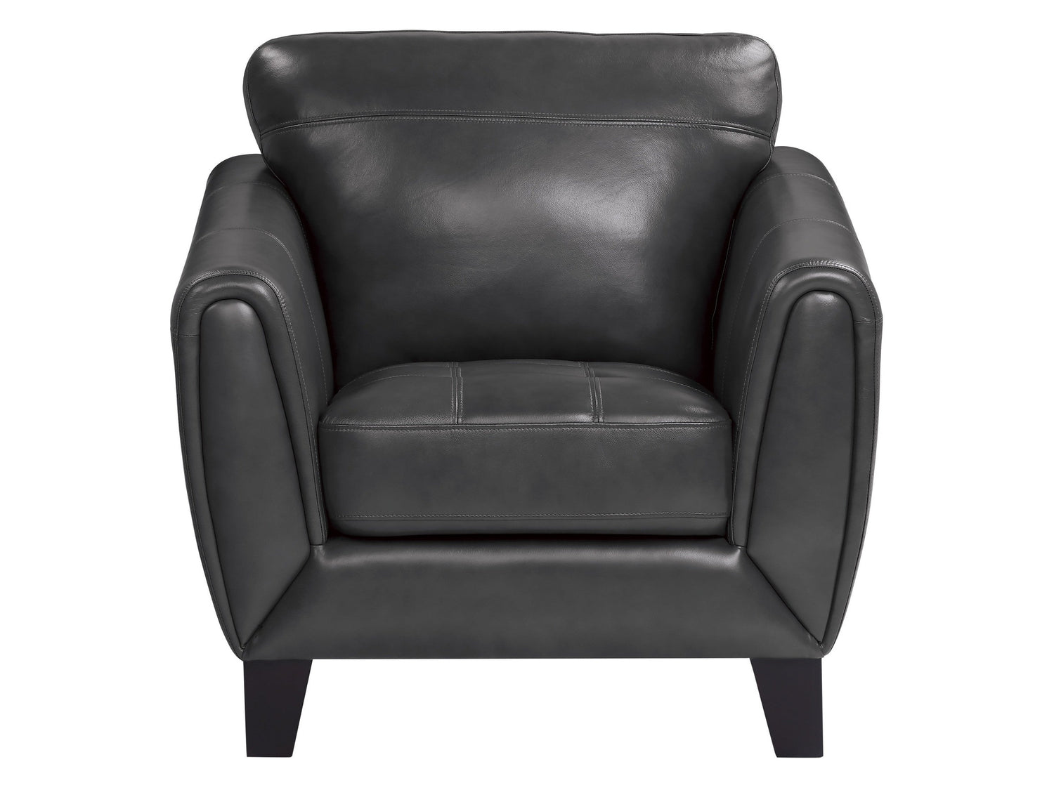 The subtle retro look of the Spivey Collection will pair with modern aesthetic of your home’s décor, creating a classically cool look that is sure to turn heads. The streamlined profile of the chair is covered in an dark gray hued top grain leather. Defining detail comes in the form of the arm’s contour stitching and the cushioned wrap of the chair’s arms.