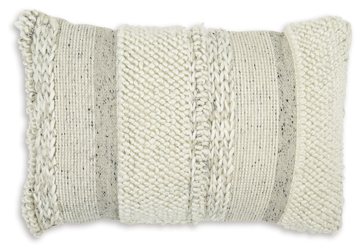 Teeming with tantalizing texture, this artful pillow is the epitome of casually cool design. Varying patterns and hues create an irresistibly charming look. What an effortlessly chic way to say, "Welcome home."