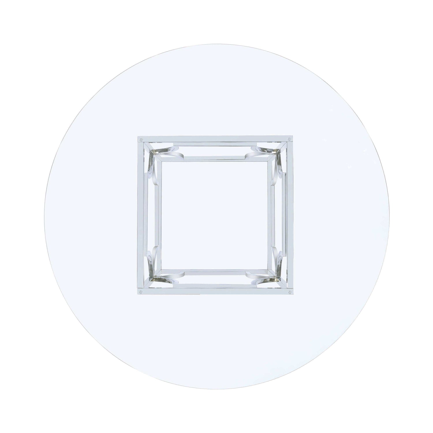 Add a beautiful visual to a dining room with this stunning dining table. Clear tempered glass top offers a sleek and easy-to-clean solution for a showstopping look. Contemporary in style, the metal frame features an openwork pattern. Sharp curves connect to create an airy feel, upgraded by a modern chrome finish. Radiant and metallic, the base enlivens any space with its reflective aura