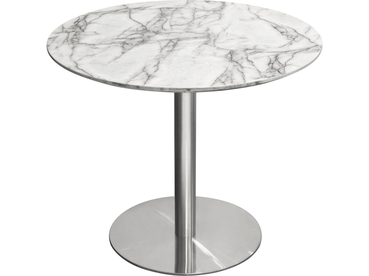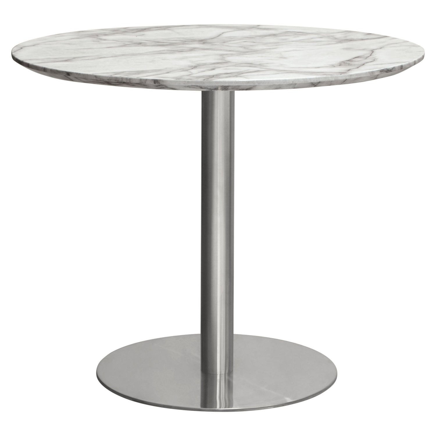 - With its faux marble top perched atop the brushed silver metal base, it provides a light and airy addition to your home's decor.