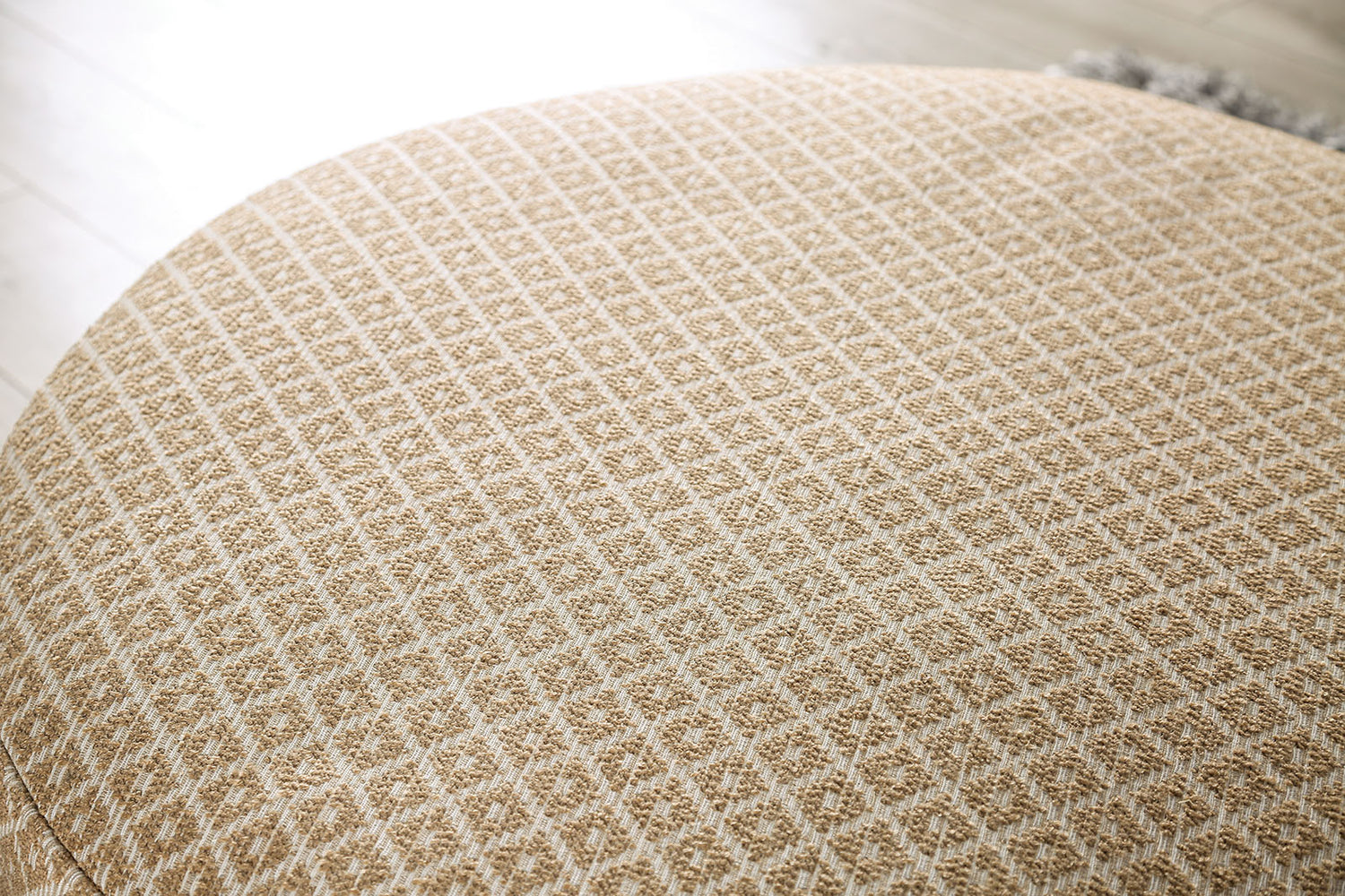Imagine your space elevated with a centerpiece like this one. This ottoman brings splashes of gold. Fully upholstered, this piece is great for any transitional home wanting a substantial update in looks and comfort.