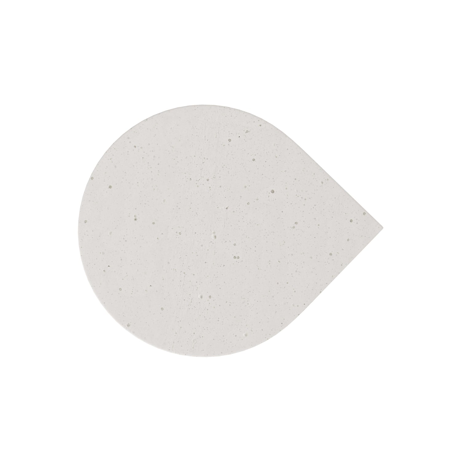 - Faux stone teardrop-shaped top and geometric base in Fossil finish
