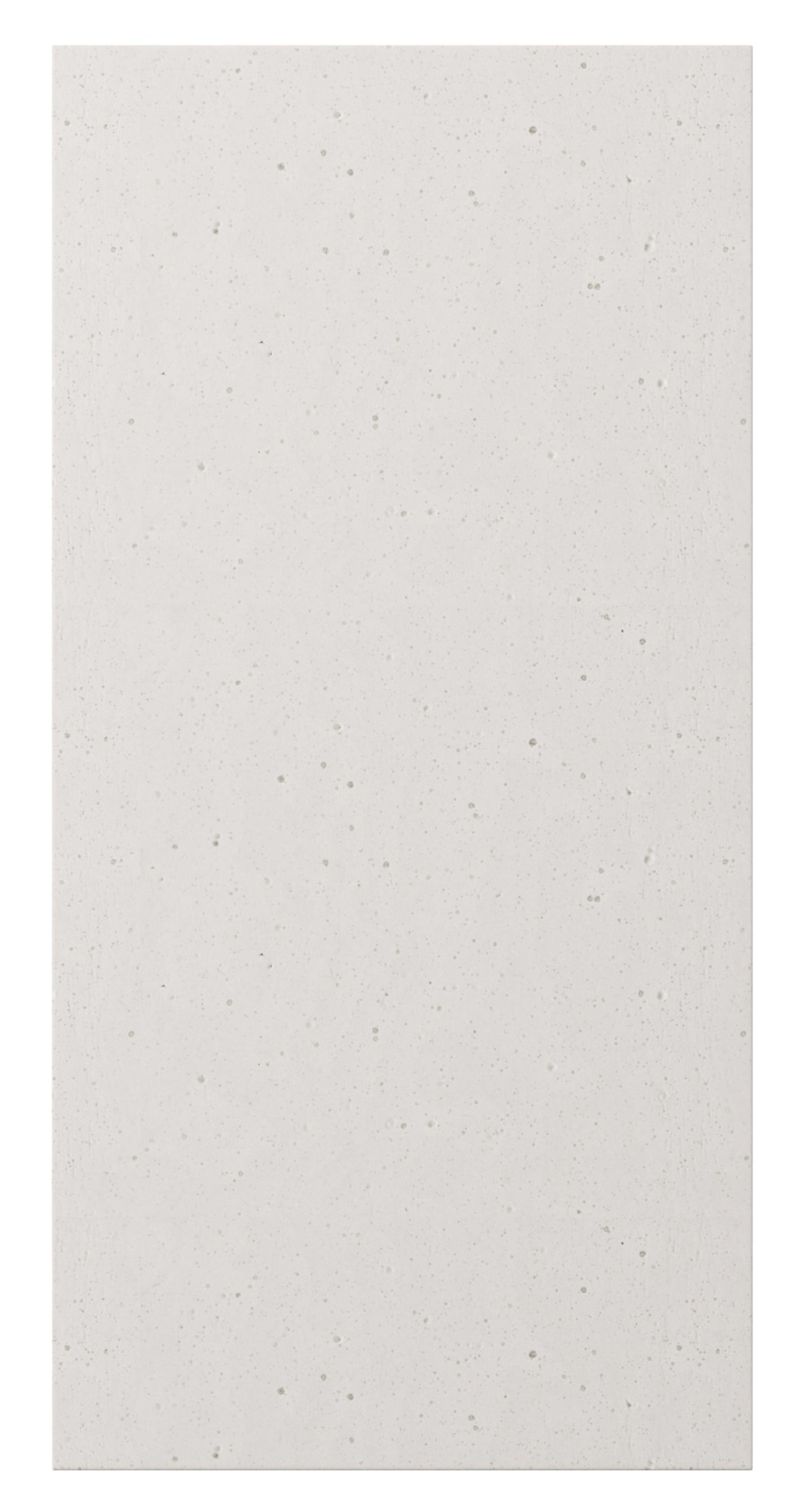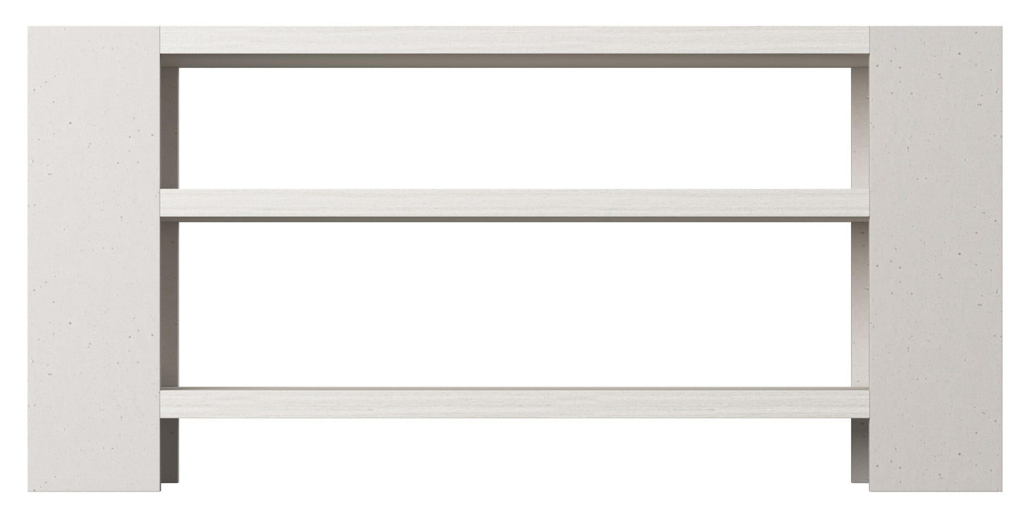 - Engineered wood veneer in Mist finish on inset top and two fixed shelves, and vertical faux stone end supports in Fossil finish