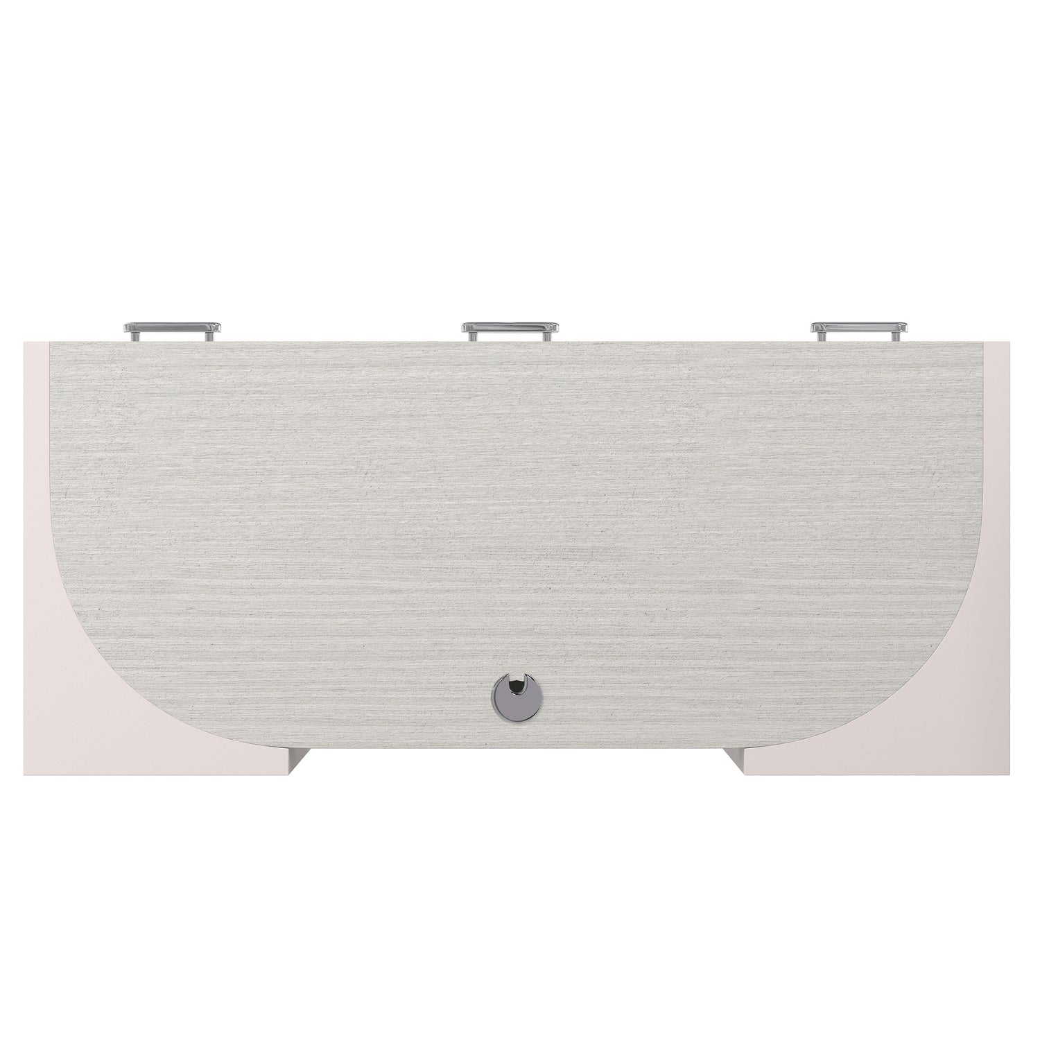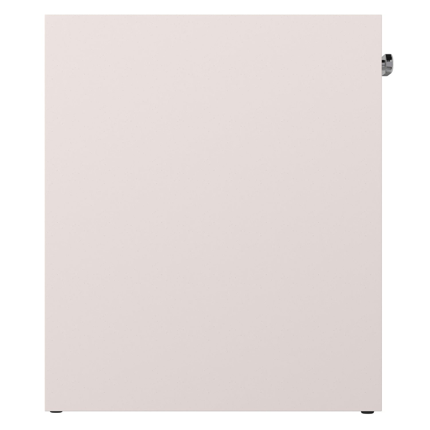 - Inset wood drawer box in Mist finish with three full-extension drawers