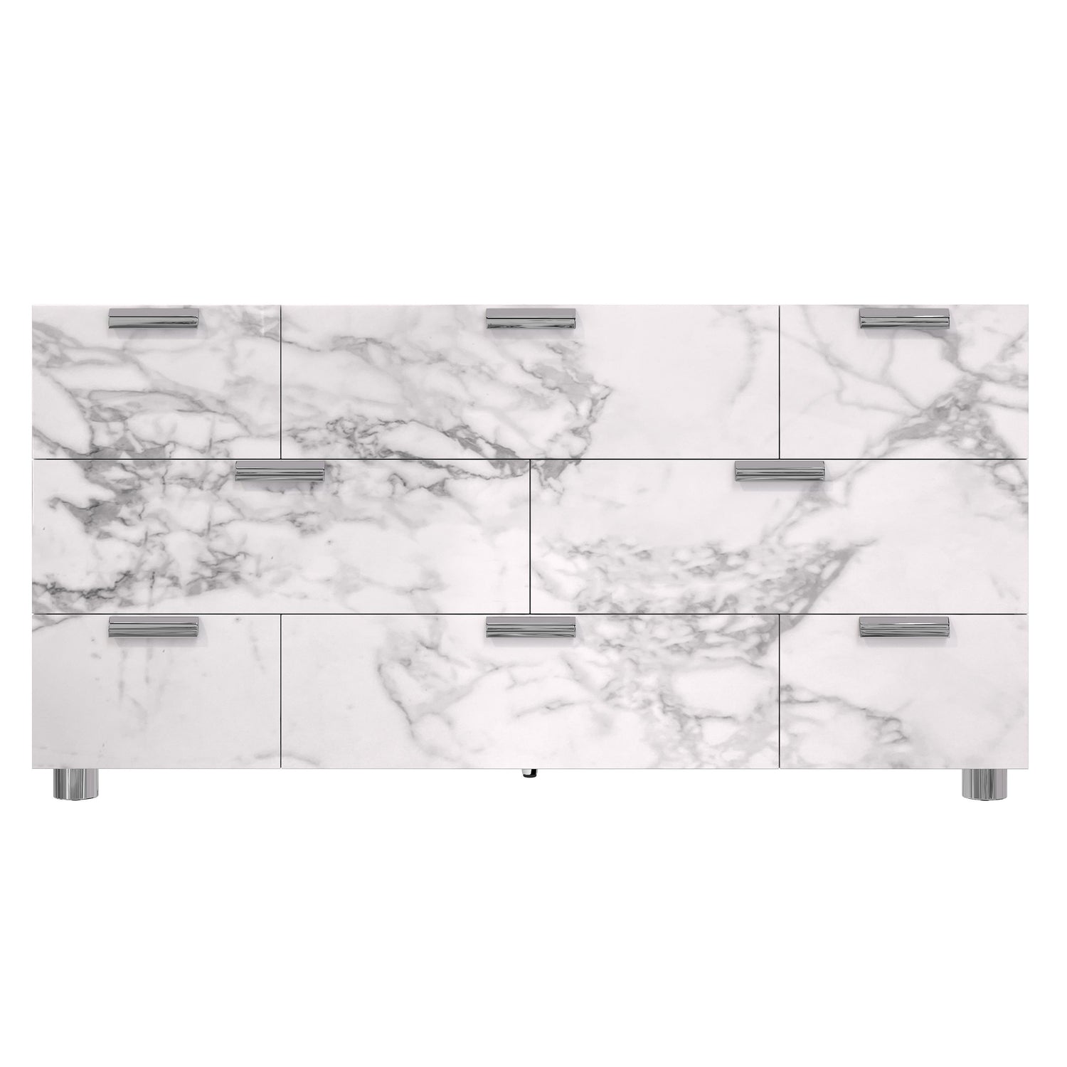 - Eight soft-close drawers with metal drawer pulls in Polished Nickel finish