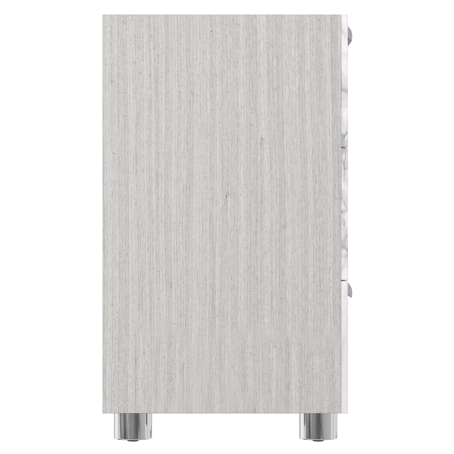 - Case of ash wood solids and engineered wood veneer in Mist finish with Arabescato stone on drawer fronts
