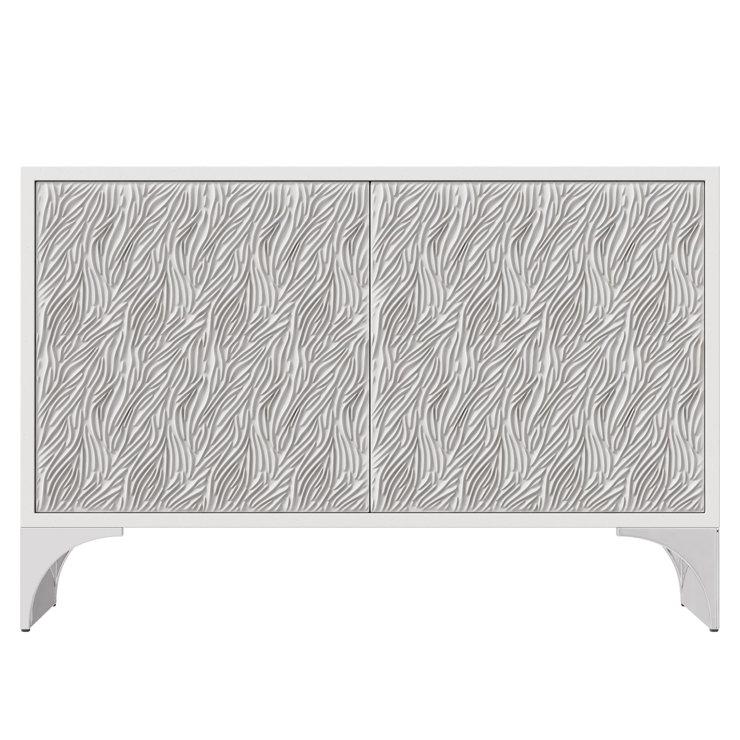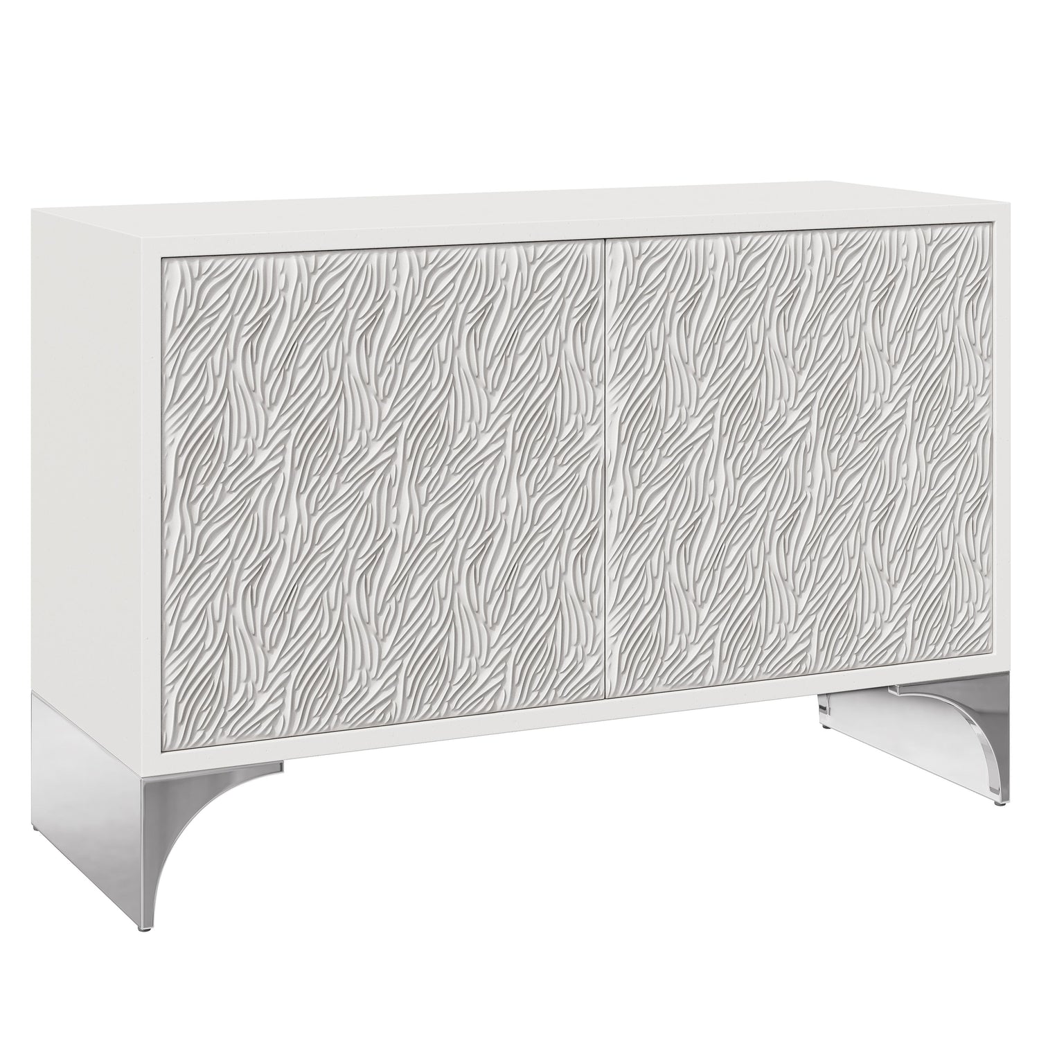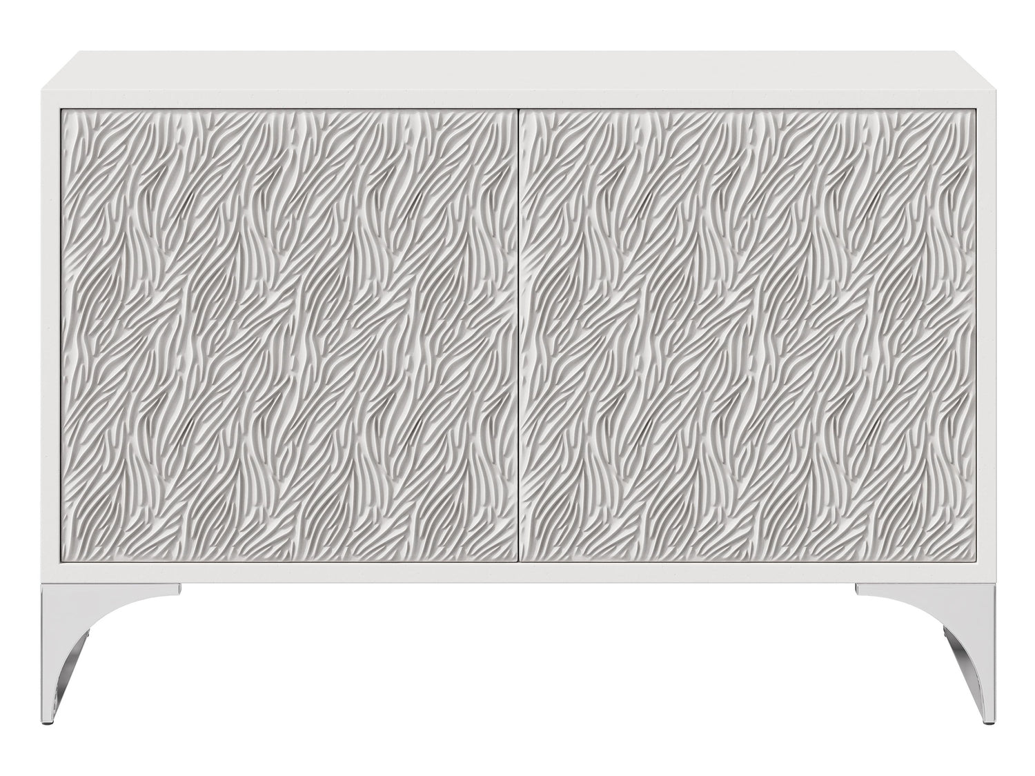- Faux stone door chest in Fossil finish with carved pattern on cast resin door fronts