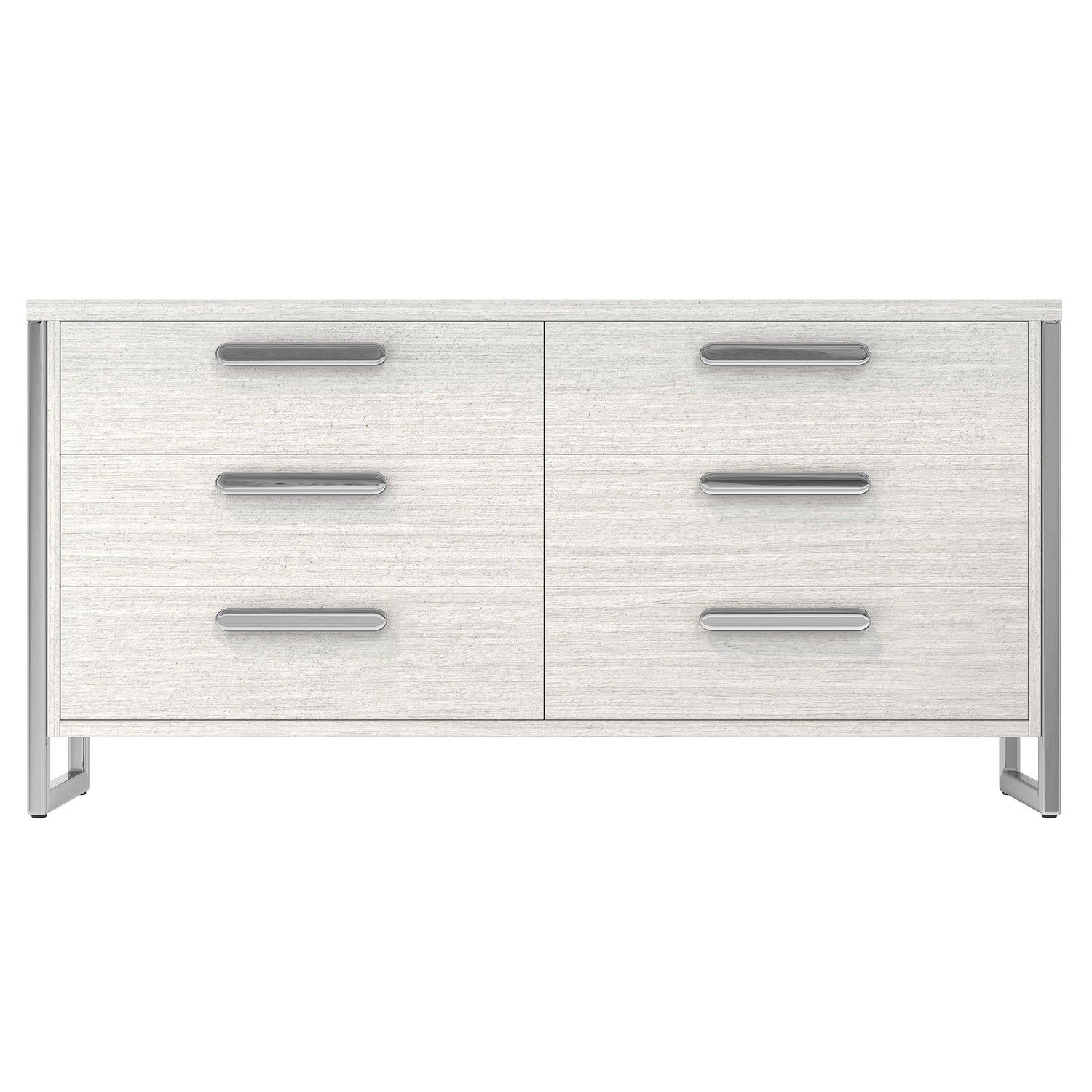 - Six soft-close drawers with metal drawer pulls in Polished Nickel finish