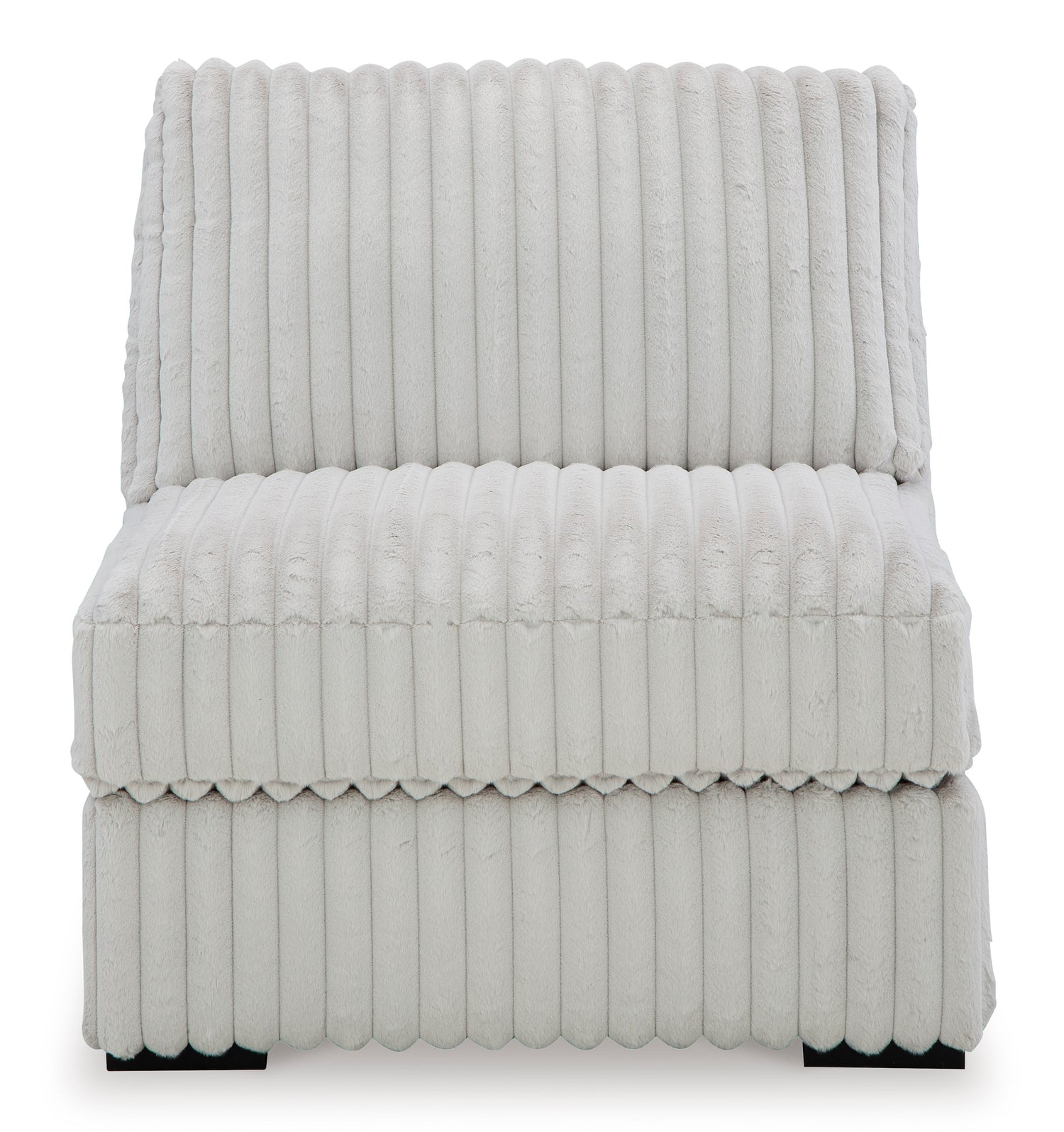- Includes 4 pieces: left-arm facing corner chaise, 2 armless chairs and right-arm facing corner chaise