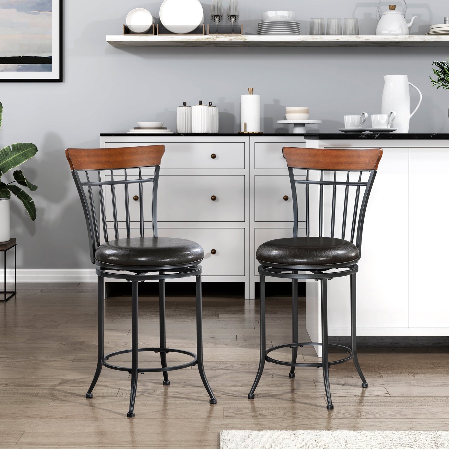 Ira Black/Brown Swivel Counter Height Chair (Set of 2)