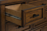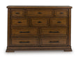 Style, simplicity and charm are hallmarks of this dresser. Created with casual spaces in mind, it has the versatility to suit styles from craftsman to modern farmhouse. The rich brown finish aligns with your refined-meets-relaxed approach to everyday style. And for a timeless touch, 10 drawers with picture frame detailing accommodate your storage needs.
