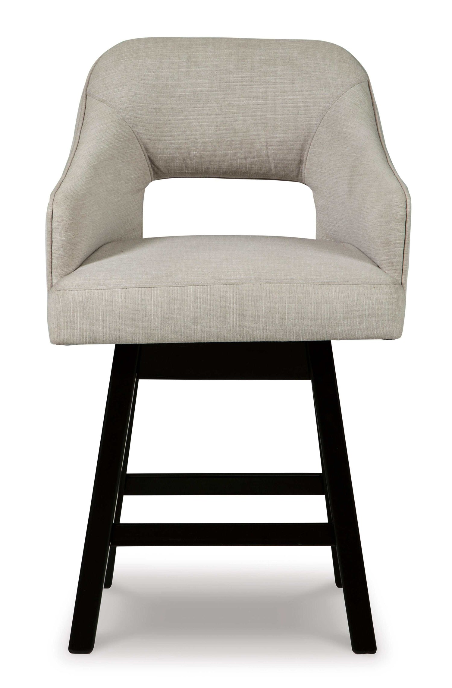 This striking barstool set invites you to take contemporary modern style for a spin. Comfortably cushioned seat, self-returning swivel and contoured back make it beautifully in tune with your needs. Luxurious woven upholstery is a sensational touch.