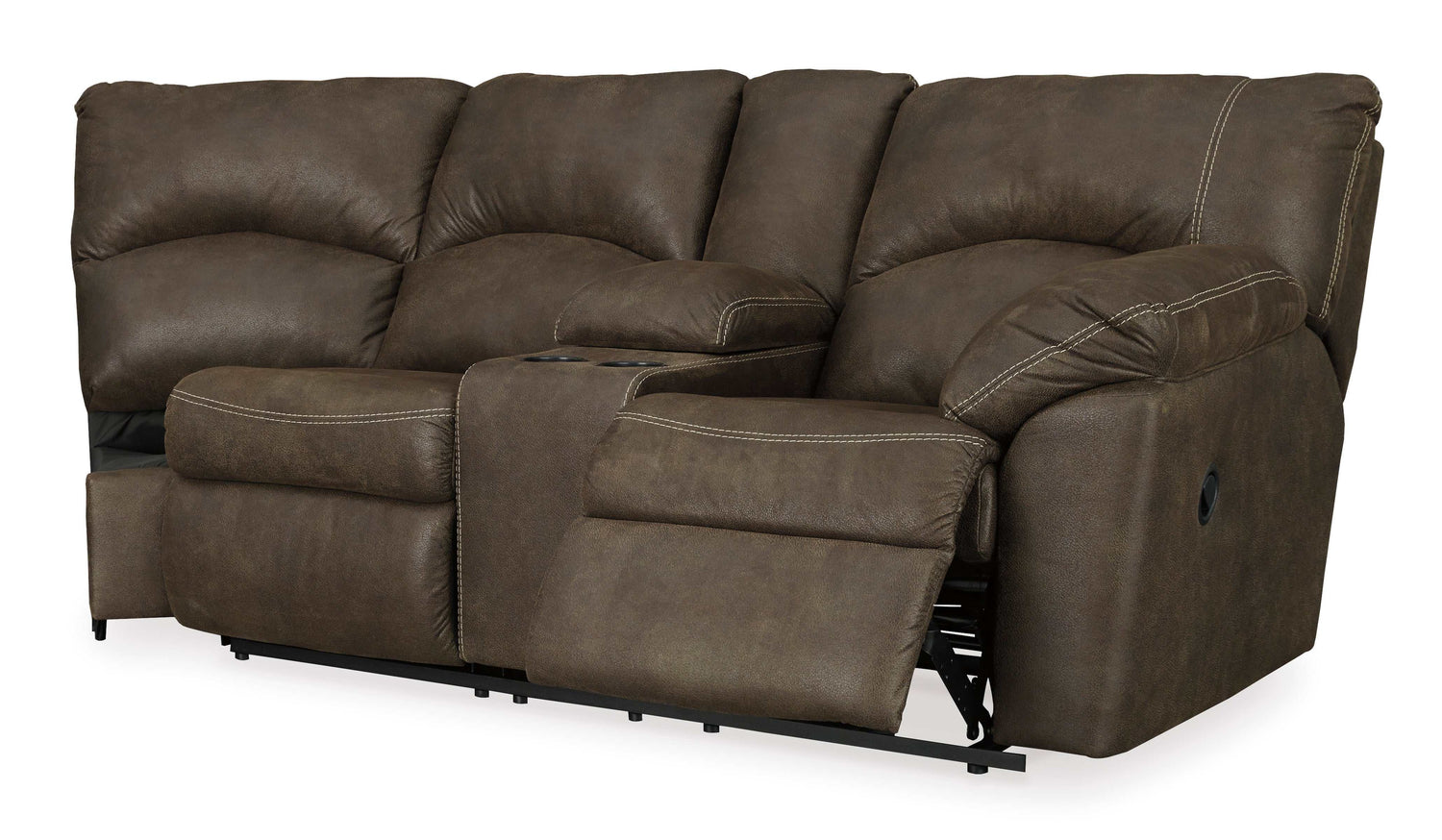 - Dual-sided recliners; right-arm facing loveseat with center storage console and 2 cup holders