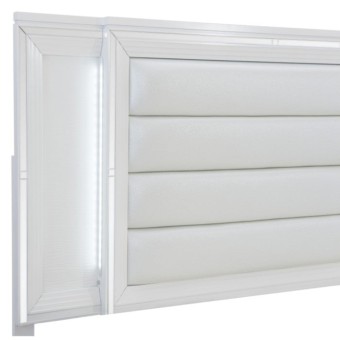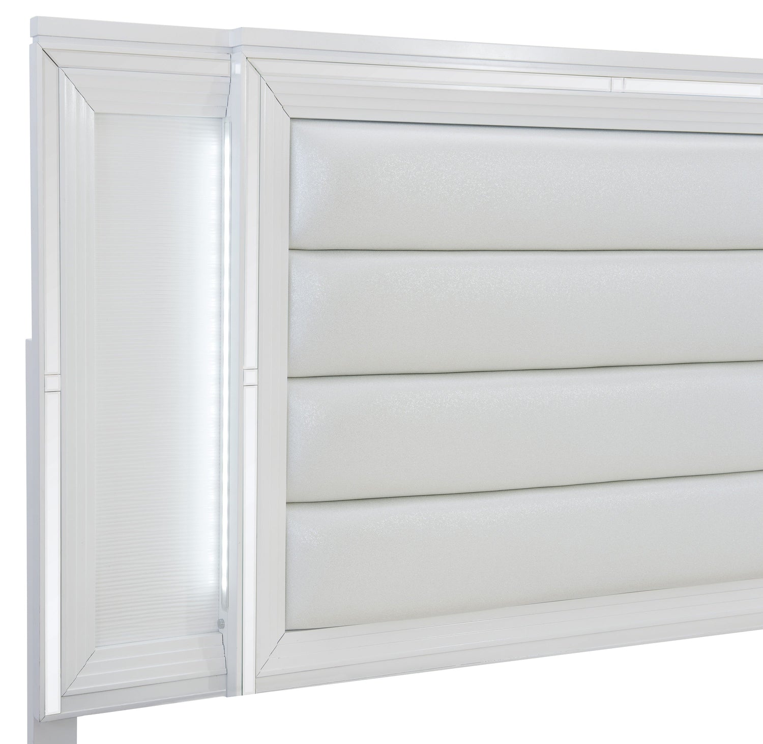 - Item Name: Tamsin White Metallic Eastern King Platform Bed With Led Lighting And Footboard Storage