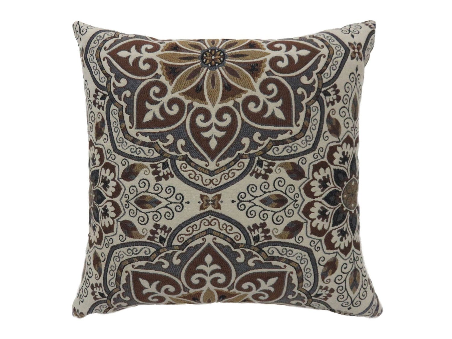 A nice medallion pattern in unique shapes and sizes is the focus of this classic throw pillow.