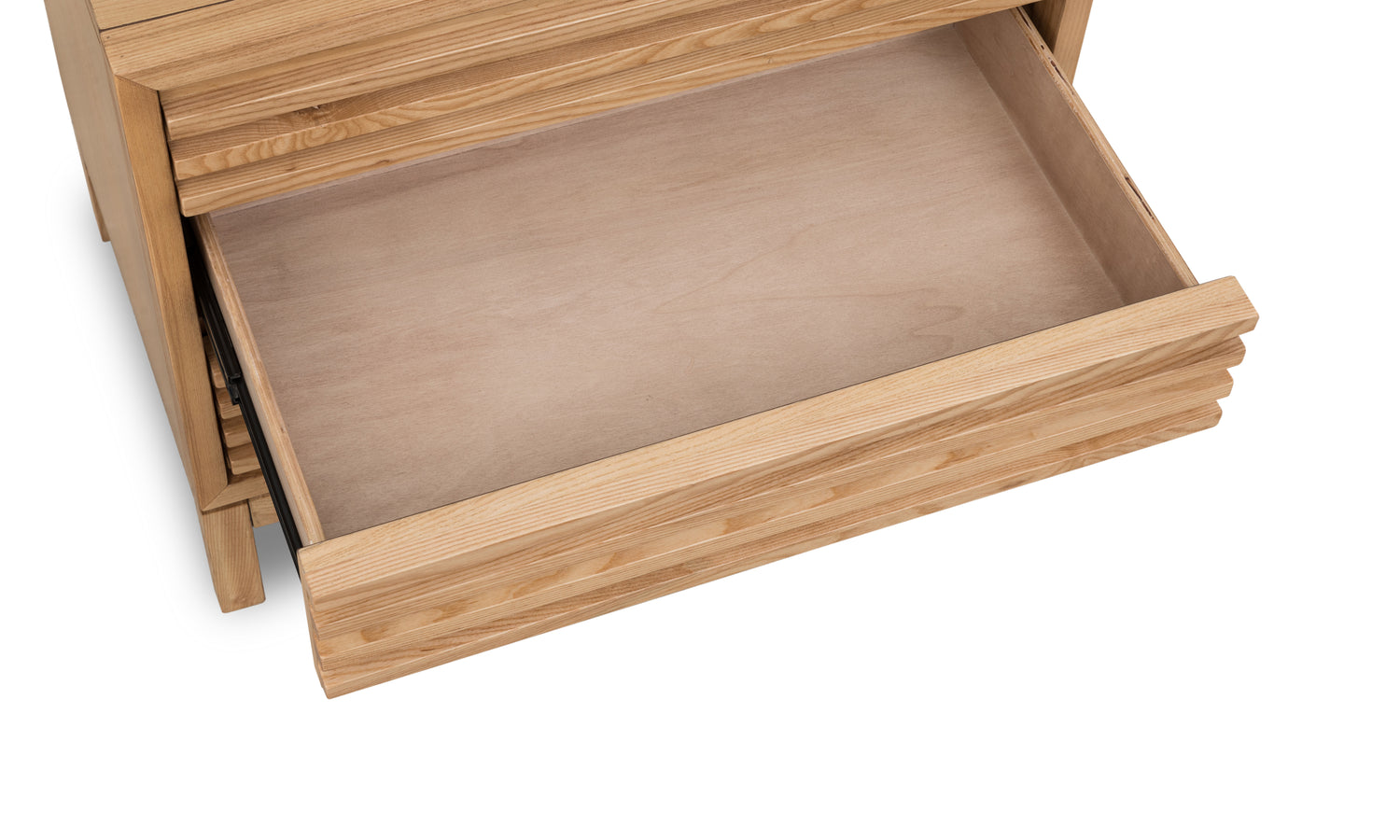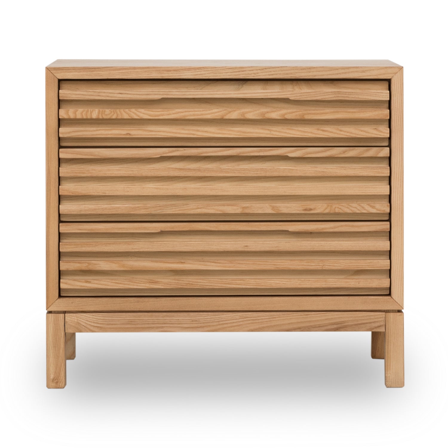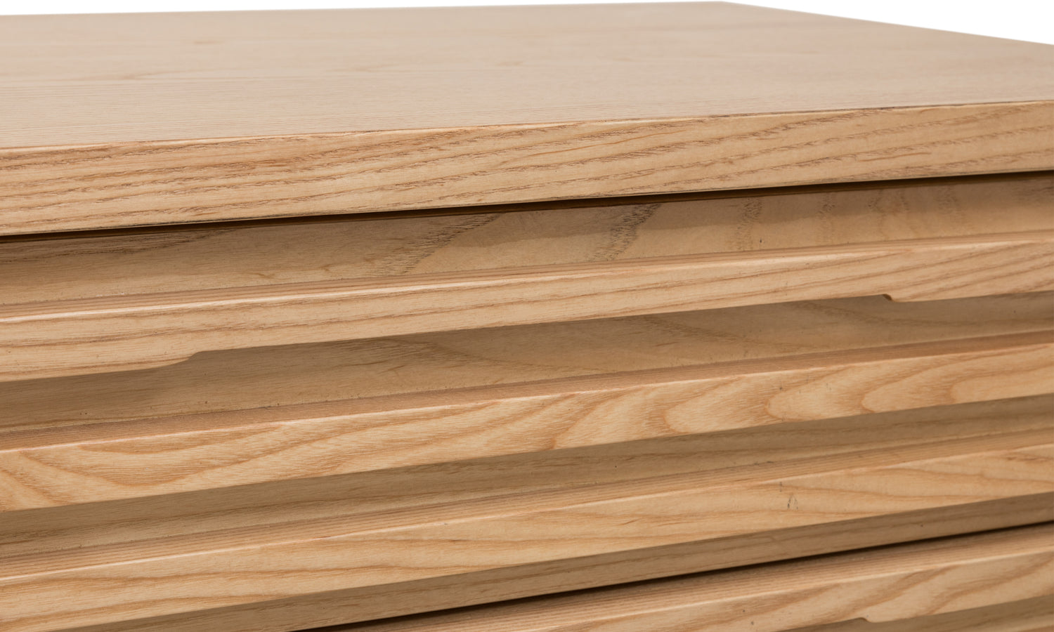 - Slatted fronts are made entirely of solid Ash with Ash wood veneer panel surfaces