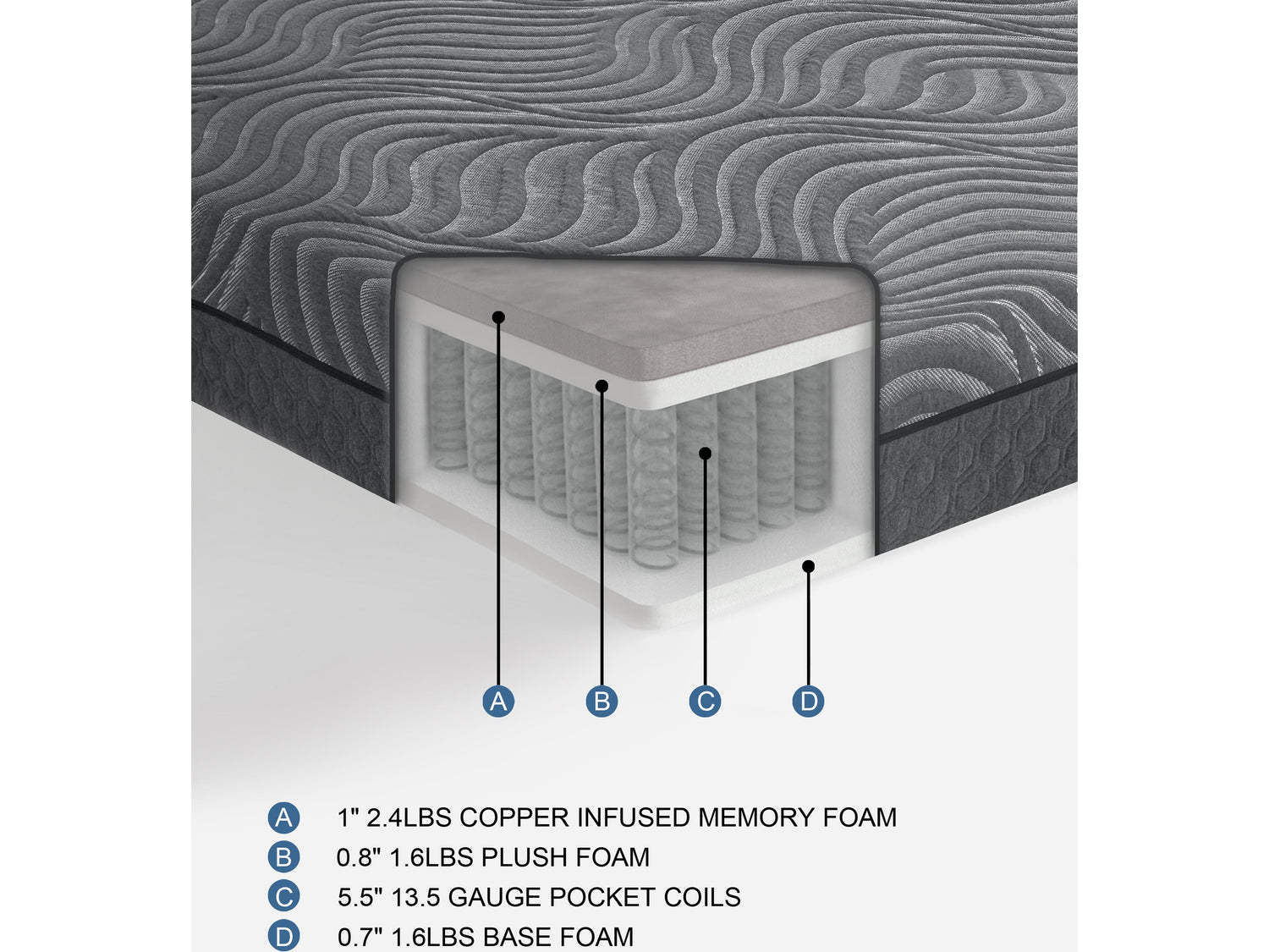 - Item Name: Taurus Dark Gray 8" Copper-Infused Memory Foam Hybrid Mattress Display Cube