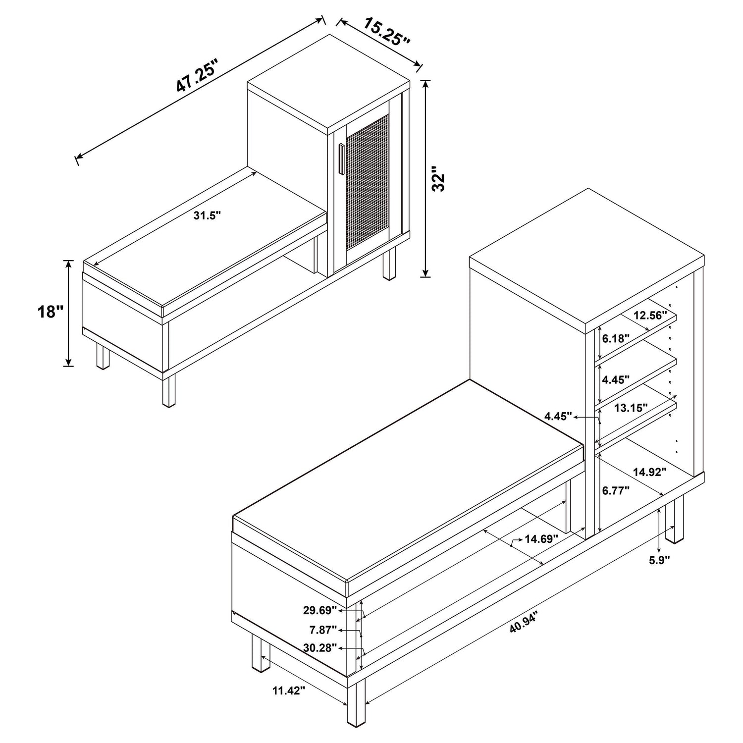 Shoe Bench Dimensions: 47.25" W x 15.25" D x 32" H & Weight: 67.03 lbs