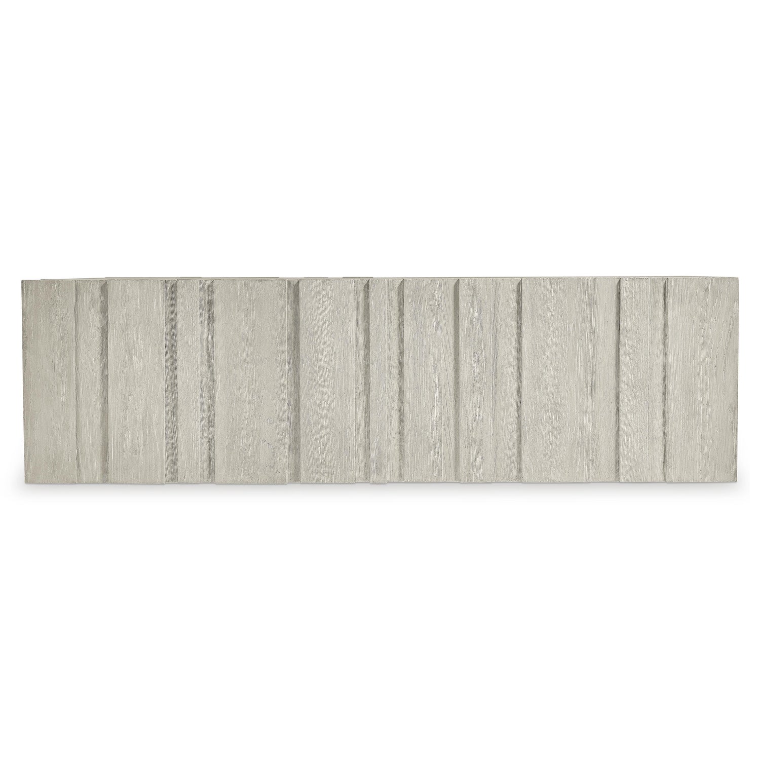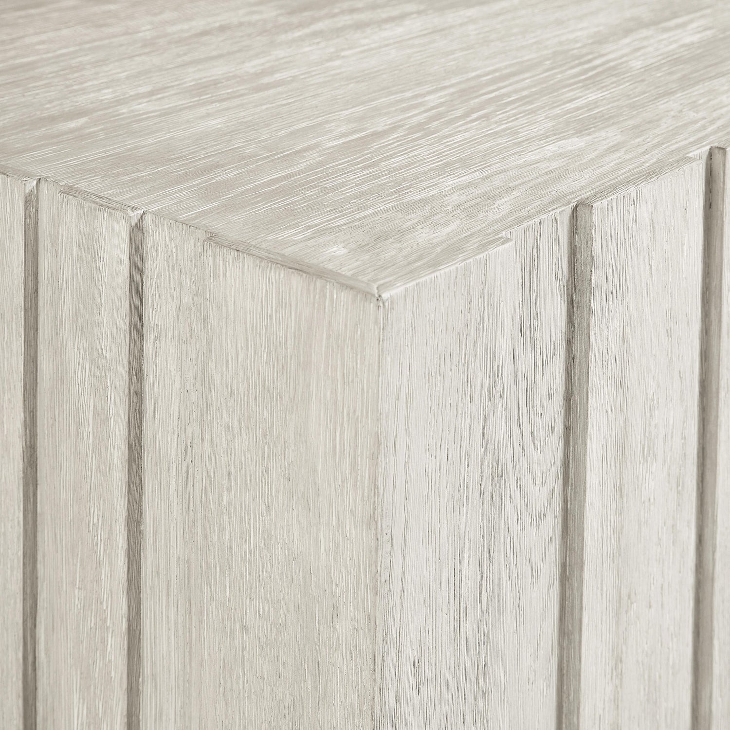 - Wirebrushed oak in Larza finish with smooth top and geometric raised panels on sides
