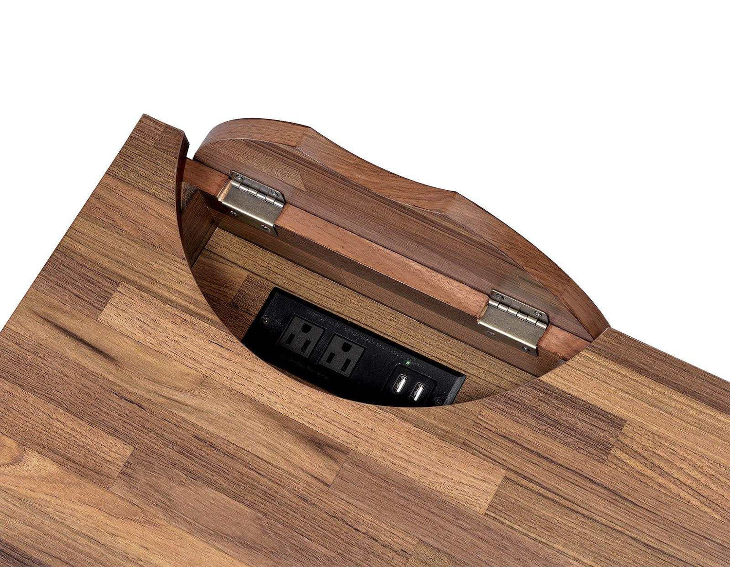 Desks offer the perfect opportunity for industrial design elements to shine. X-cross leg supports finished in a texture sand black support a lovely wooden paneled table top. Three slim desk drawers offer plentiful room for your supplies and an integrated USB and power outlet keep your necessary devices powered up.