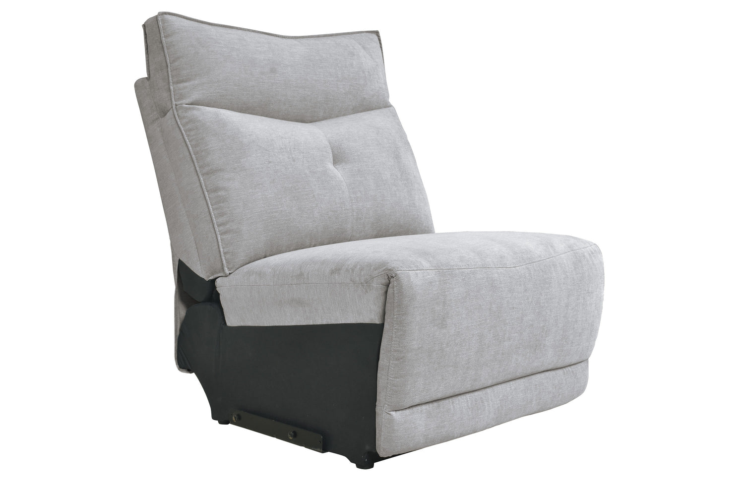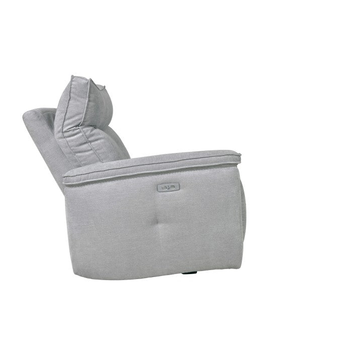 Providing ample seating in modern form the Tesoro Collection. The classic sectional shape is book-ended by USB port enhanced end power recliner and end chaise unit – allowing for maximum versatility when planning the layout of your living room. Mist gray fabric provides a neutral palette for your decorative preferences. The power reclining mechanism of the reclining ends and armless chair brings you to your desired position with a touch of the button. Providing additional support is the USB enhanced ports, console unit - with storage and stainless steel cup holders - and the power operated headrest that allows you to further customize your comfort experience.