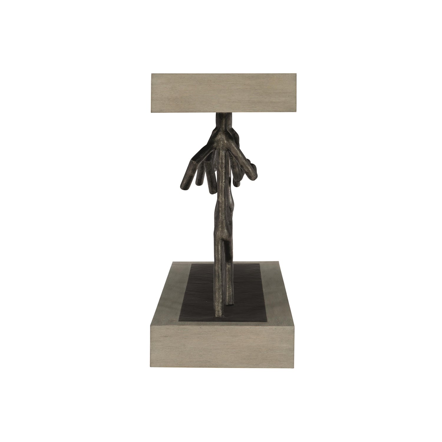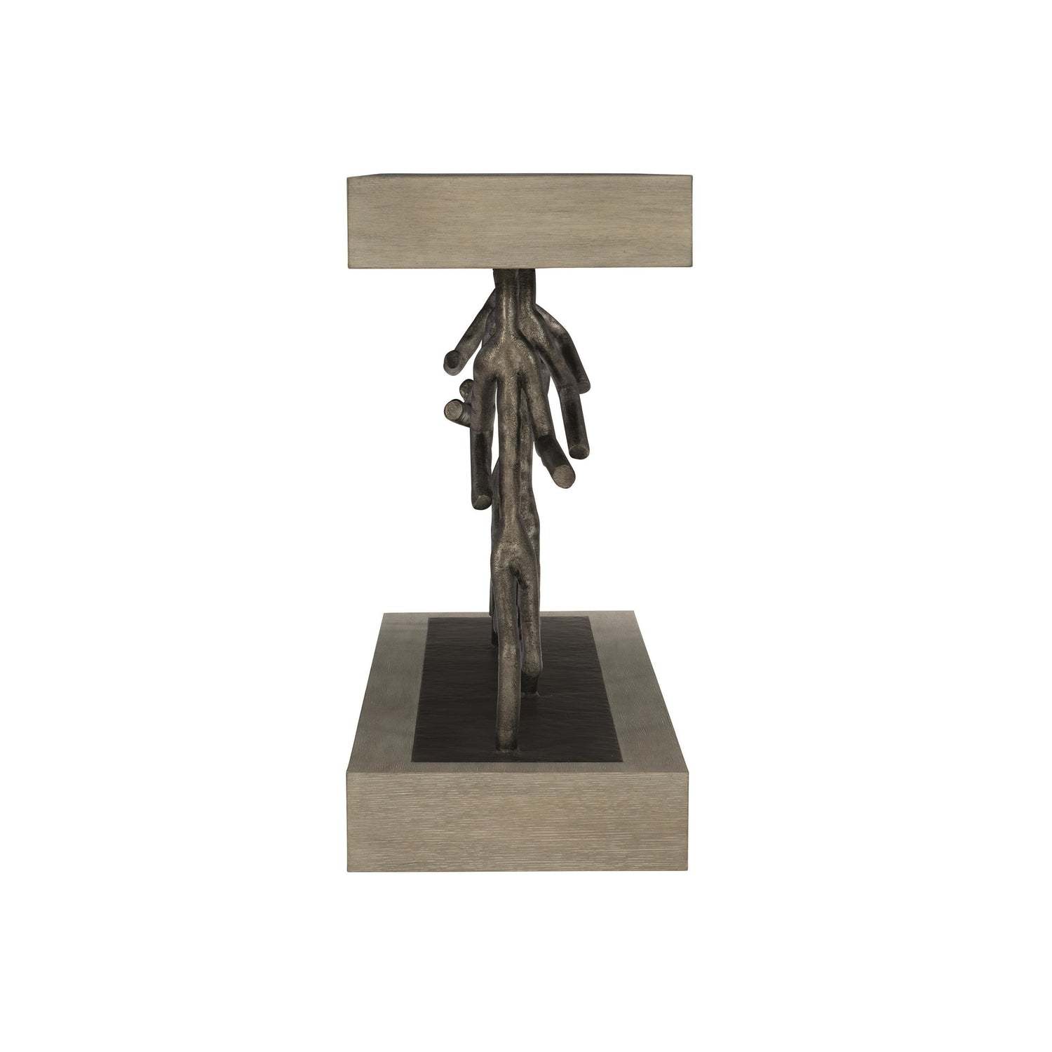 - Wire-brushed top and base of quartered white oak veneers in Cerused Greige finish