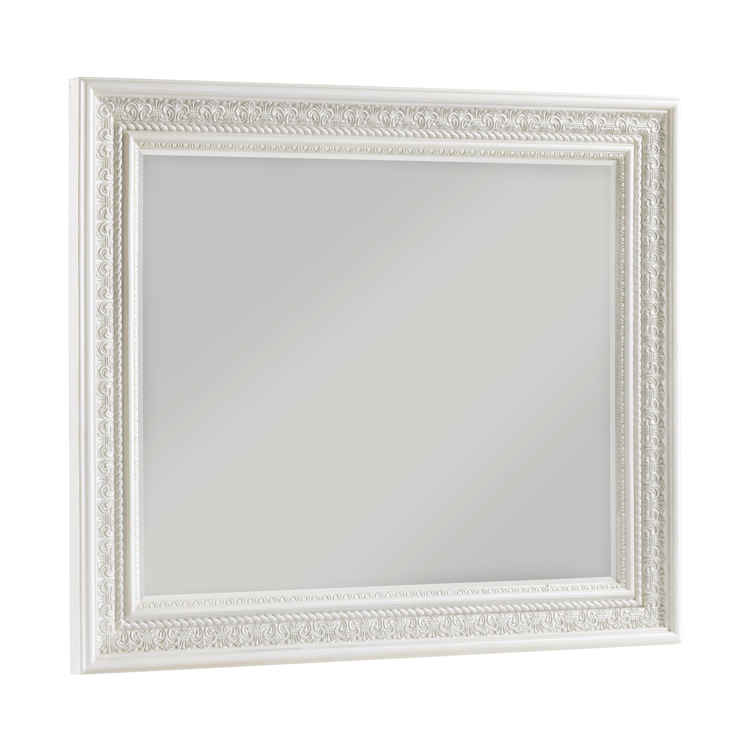 Modern Classicism is defined in the elegant presentation of the Theodora Collection. The treasured themes of old-world accenting – egg and dart molding, acanthus detailing, rope molding, detailed knob hardware – comprise the design of the mirror's frame, the timeless style enhanced by the modern pearl white finish over the collection’s ash veneer.