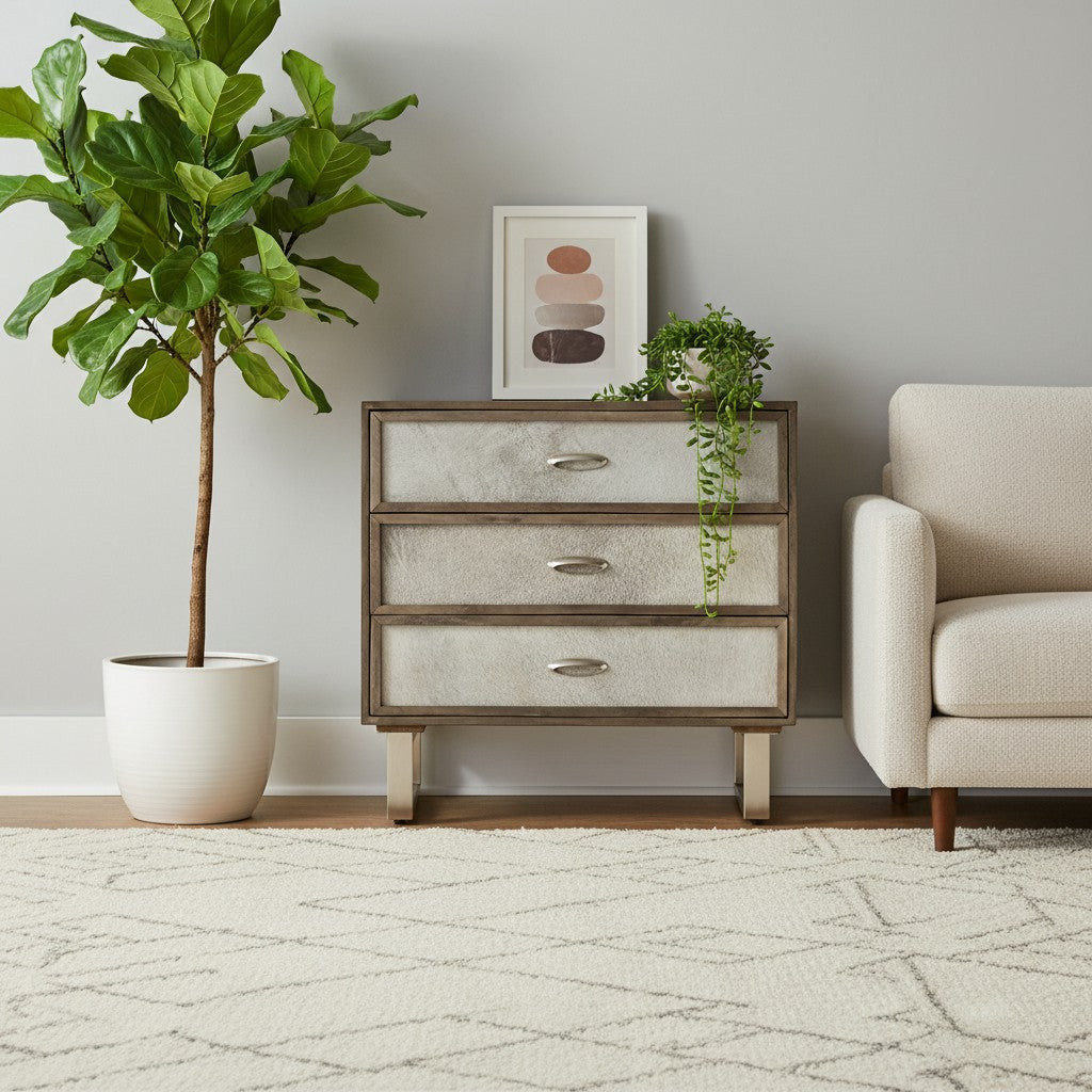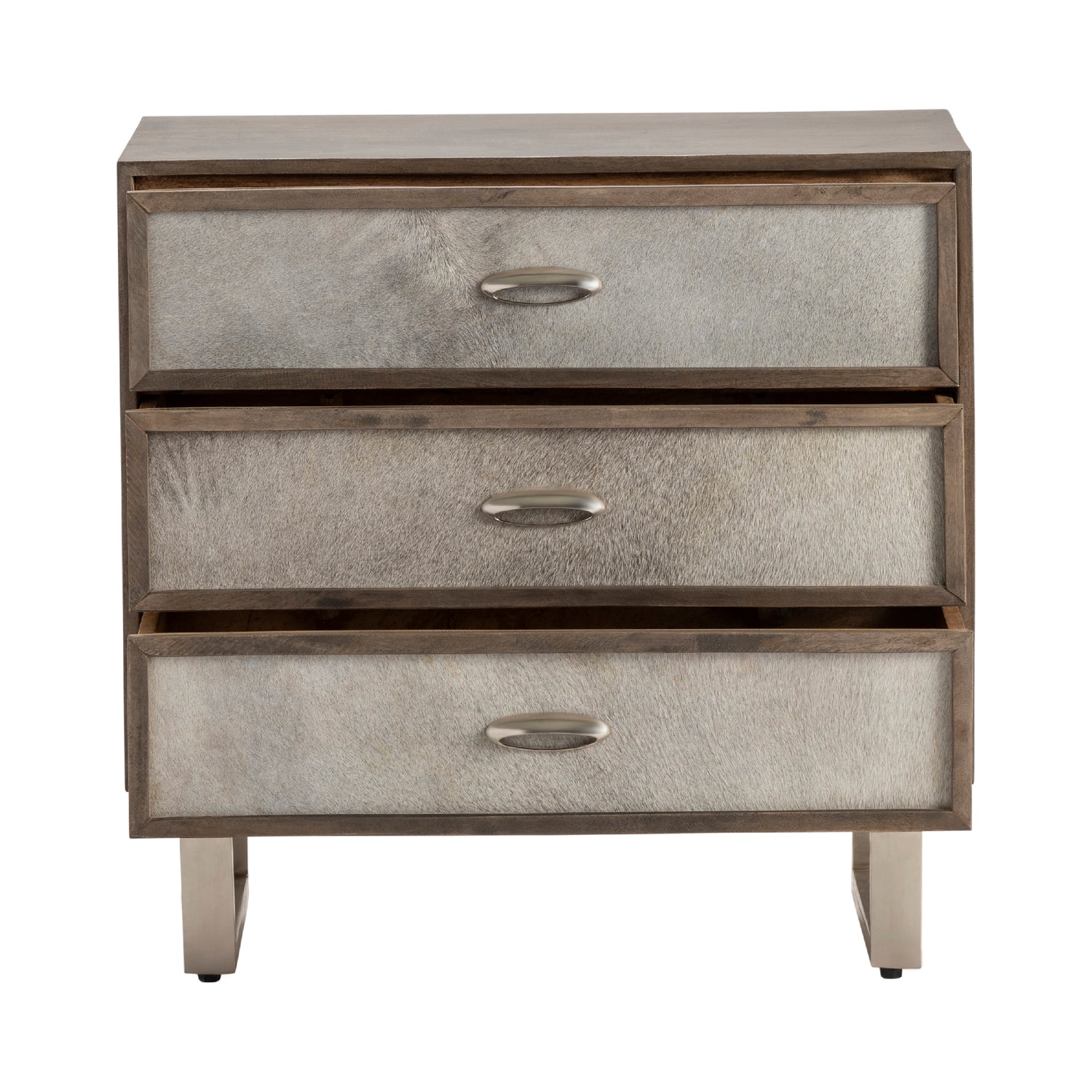 - Genuine hair-on-hide drawer fronts deliver bold natural texture