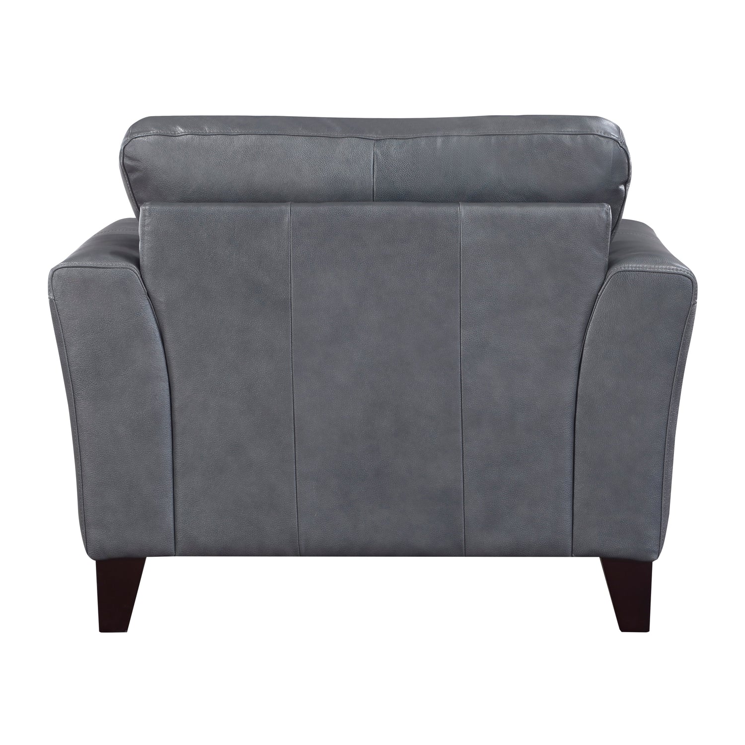 With subtle inspiration from modern European design, the contemporary style of the Thierry Collection pairs understated elegance with defining lines resulting in a sophisticated look for your living room. The burnish-gray hue of the chair’s top grain leather covering – with split-grain leather match – is a neutral decorative selection for your space. Geometric stitching accents the seats of the chair, while the flare of the track arm completes the modern profile.