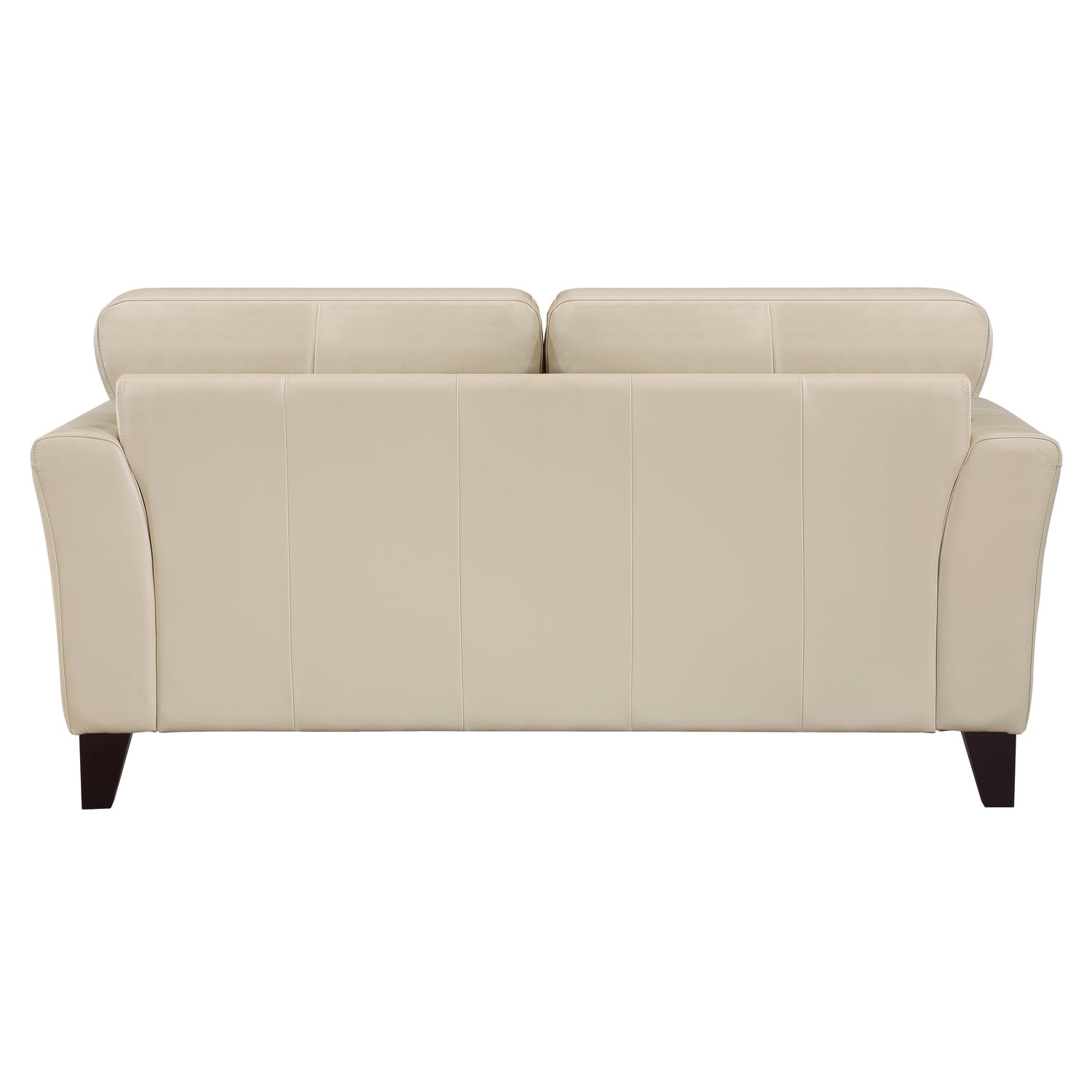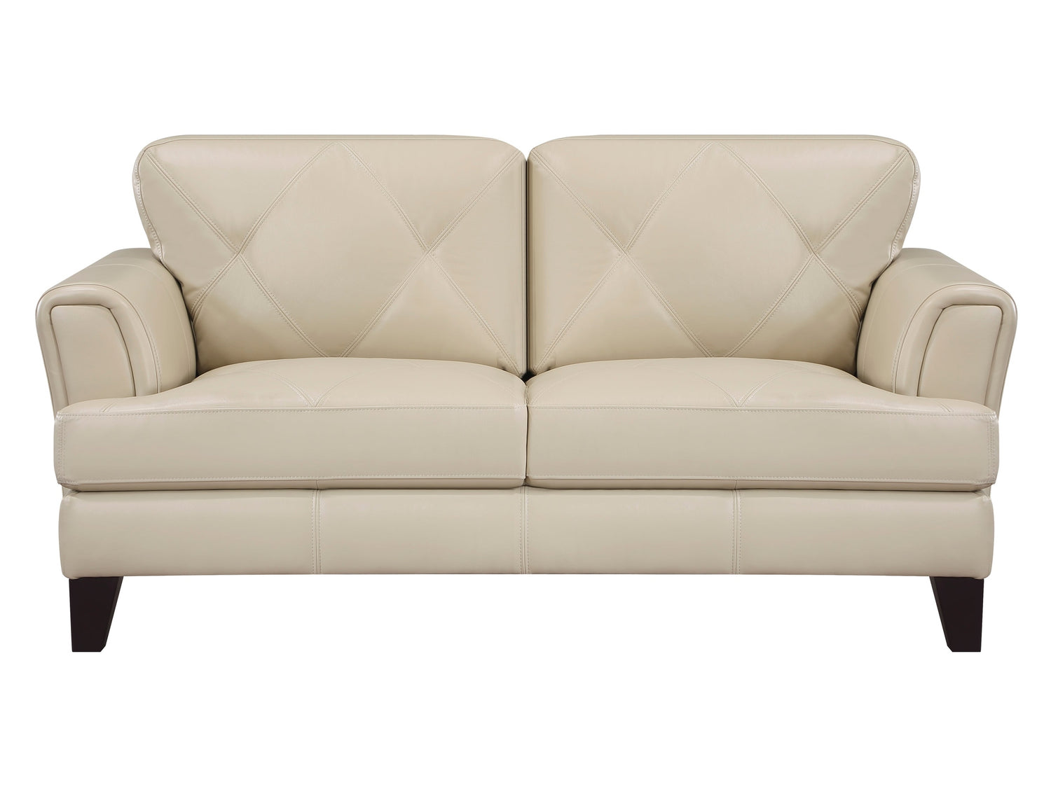 With subtle inspiration from modern European design, the contemporary style of the Thierry Collection pairs understated elegance with defining lines resulting in a sophisticated look for your living room. The cream hue of the love seat’s top grain leather covering – with split-grain leather match – is a neutral decorative selection for your space. Geometric stitching accents the seats of the love seat, while the flare of the track arm completes the modern profile.