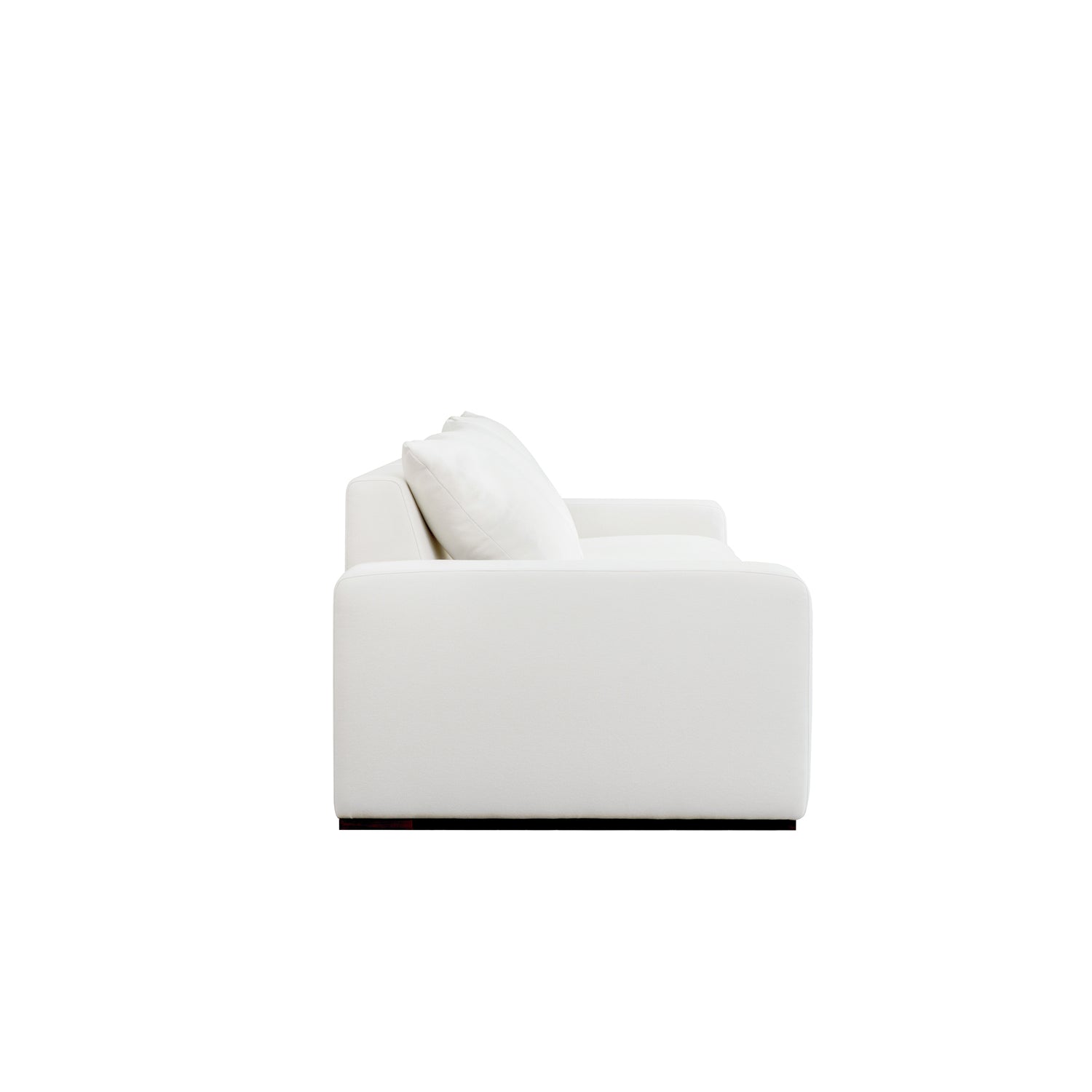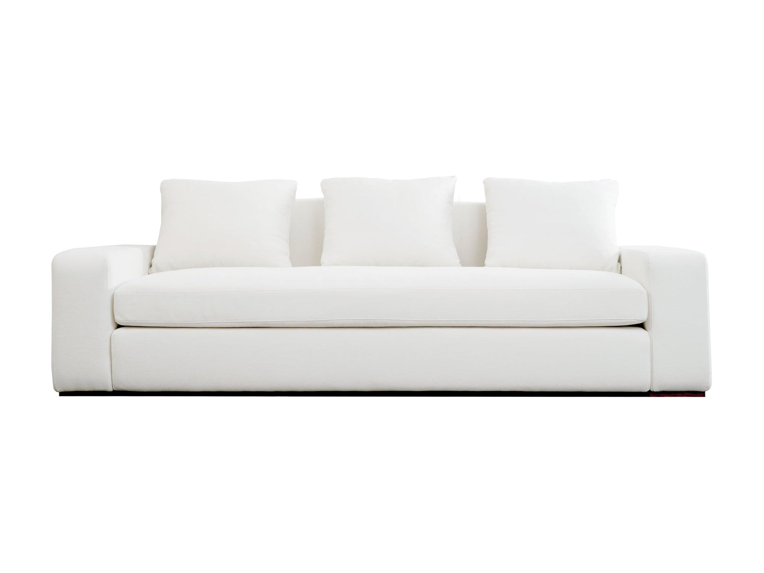 - Oversized with wide track arms, bench seat, three removable & reversible back cushions, with even channeling within the seat to ensure feathers stay evenly distributed- C0 performance fabric 100% polyester over solid wood & plywood frame