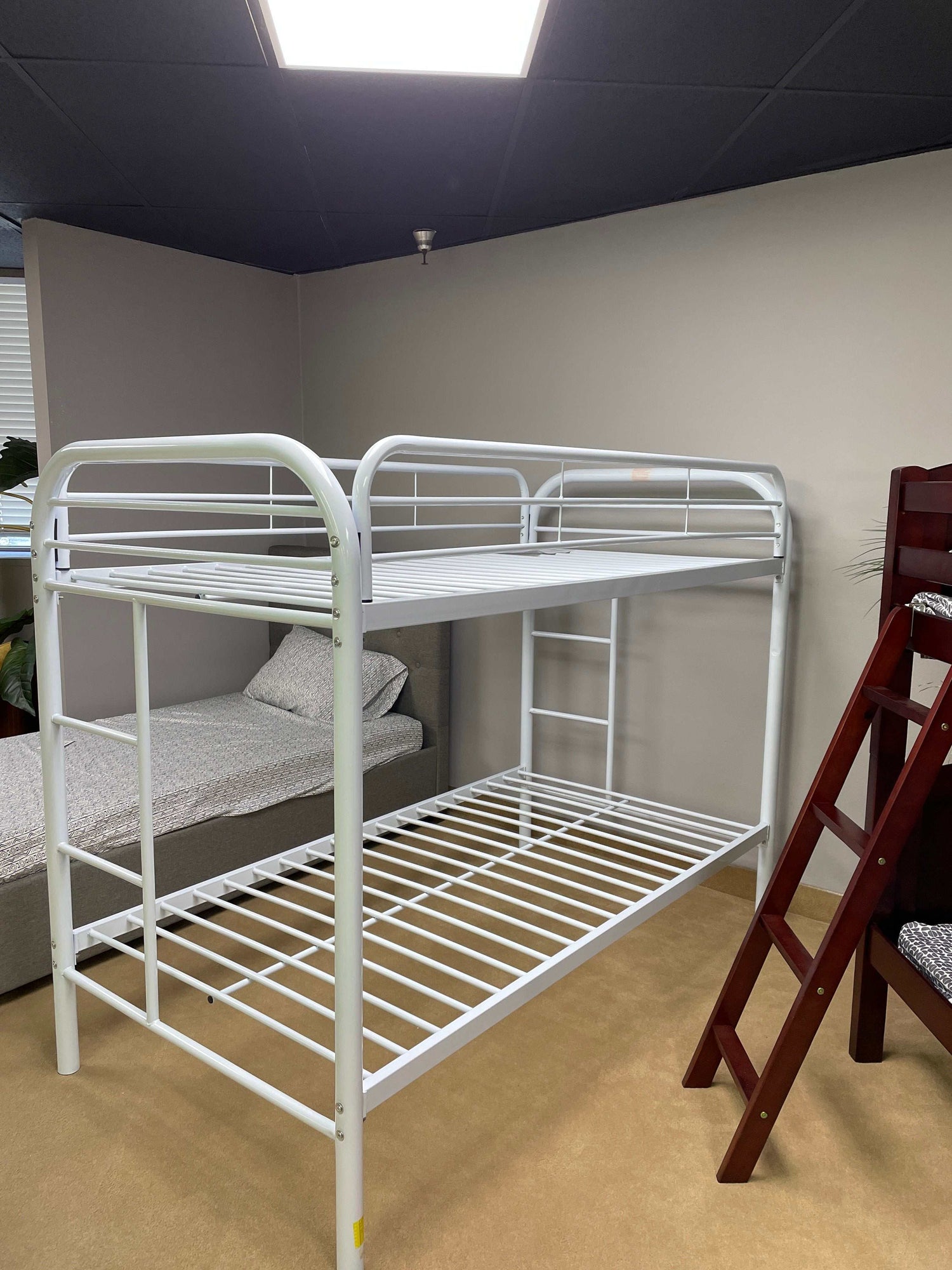 The Thomas twin over twin bunk bed is an amazing space saver, will make a wonderful addition to your children's room. Superior quality metal for durability, built-in side ladders for easy access, and full length guard rails for safety. Choose from a variety of colors, makes it compatible with all types of decor settings.